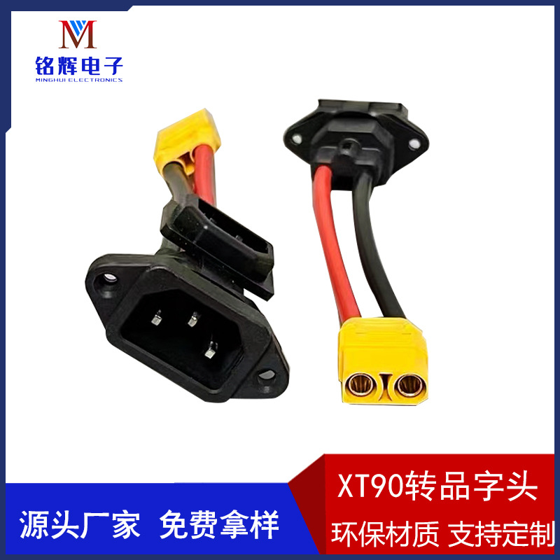 XT90公母插座转换品字插座电动车充电口90度弯堵头锂电加粗电源线