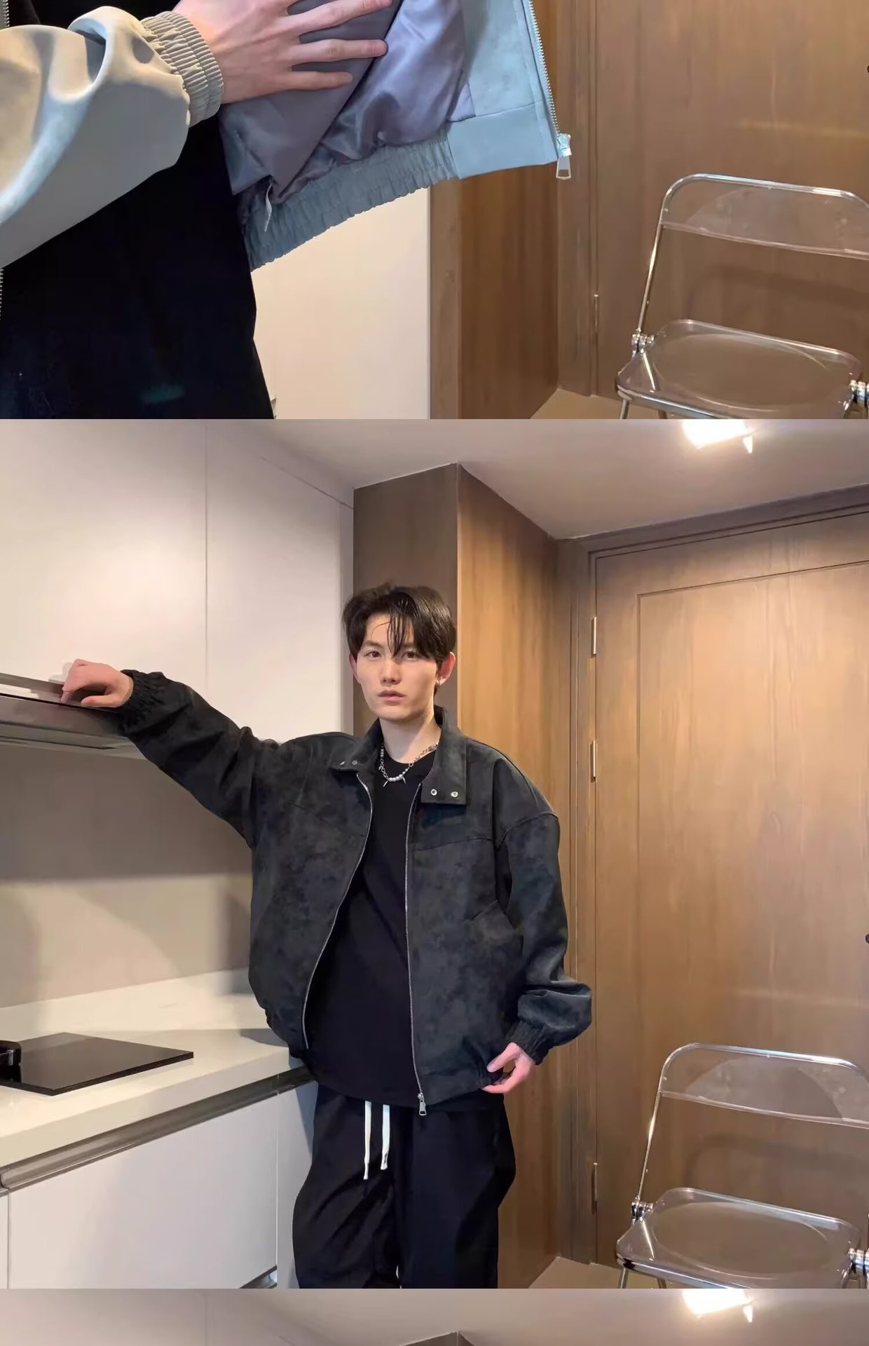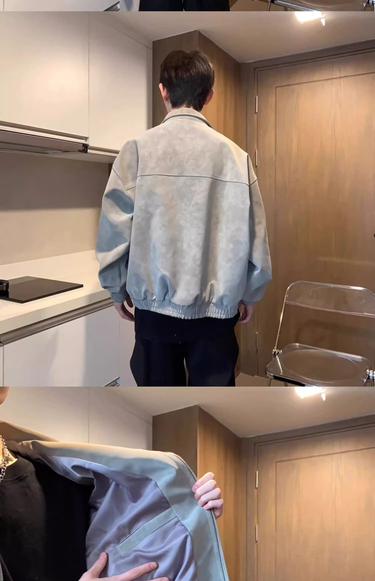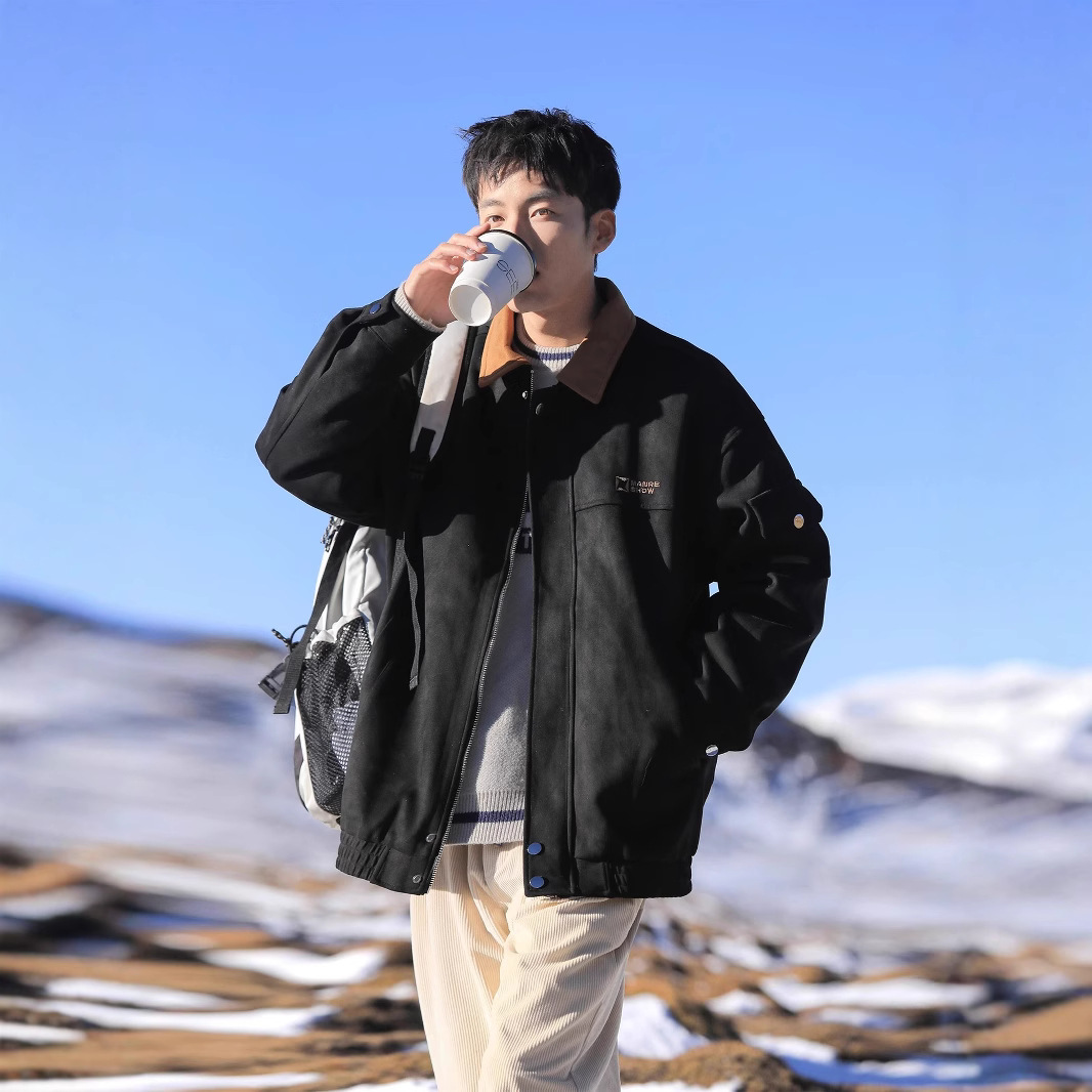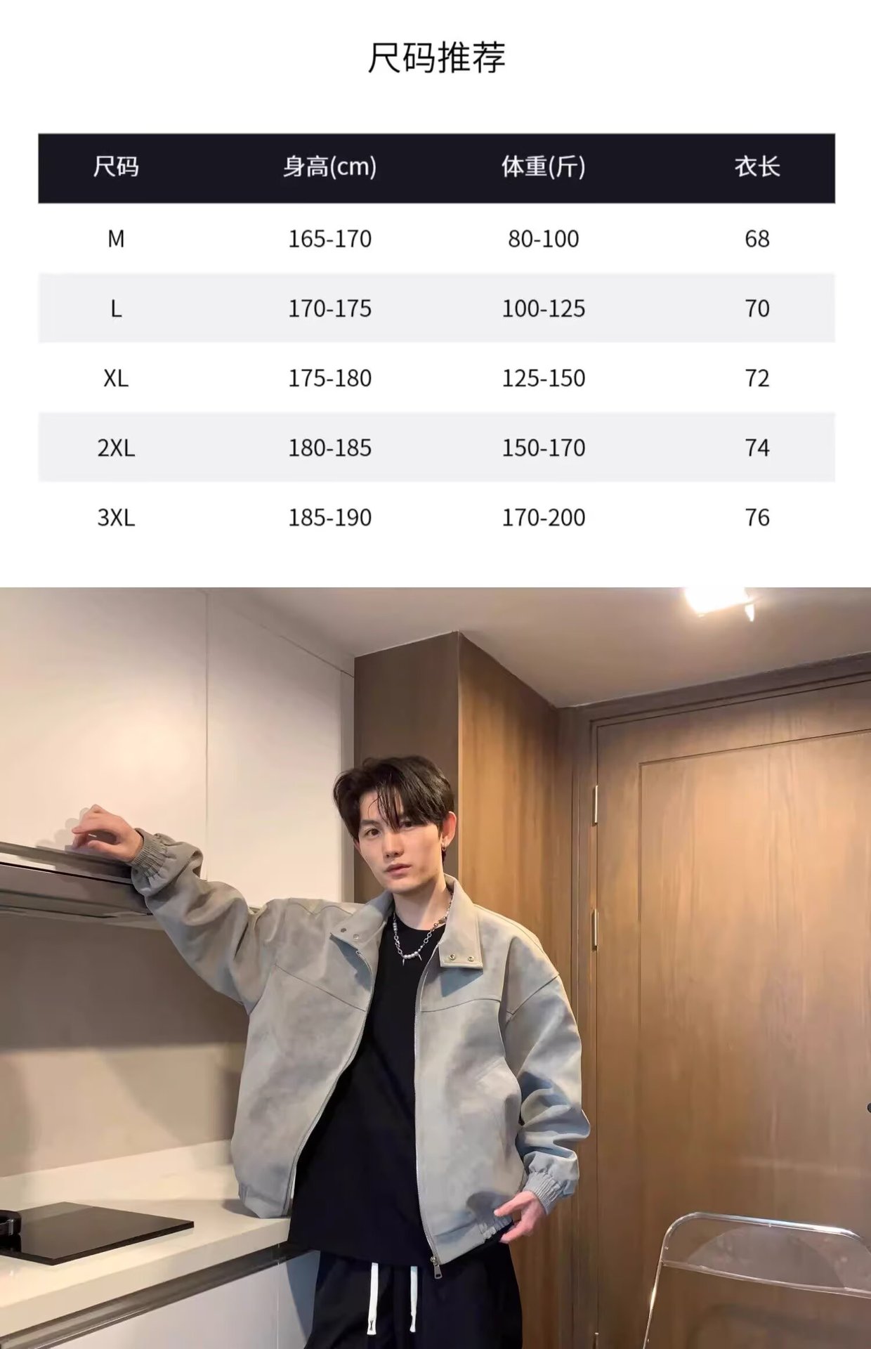 2025春季刺绣鹿皮绒美式复古翻领工装款日系夹克外套潮牌情侣男女