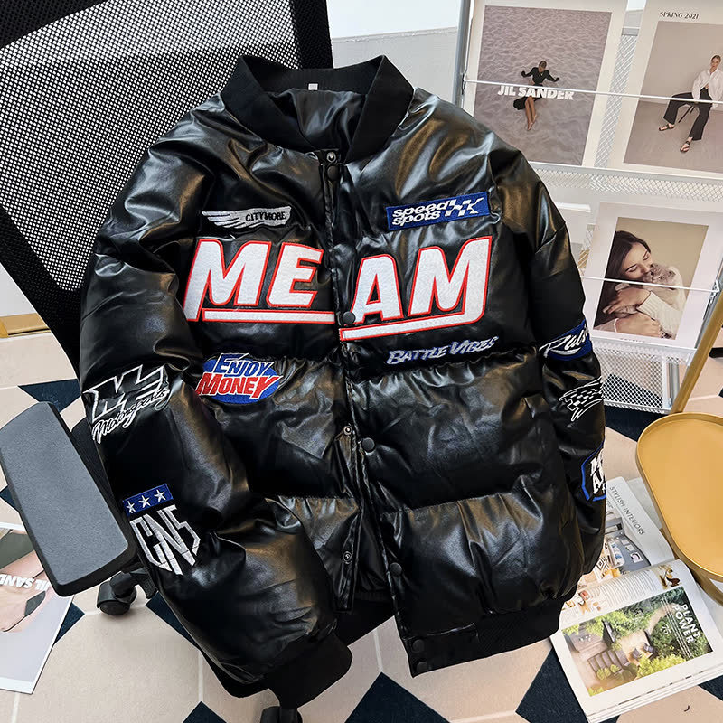 レースpu皮綿服男性用冬のアメリカ式高級感機関車綿入れの上着