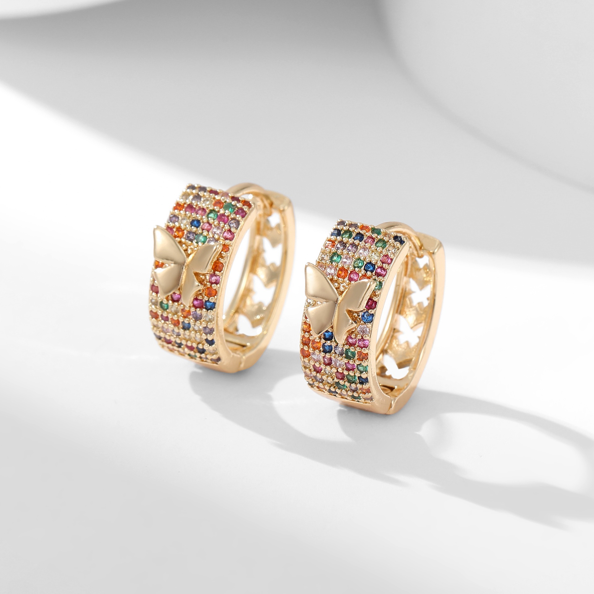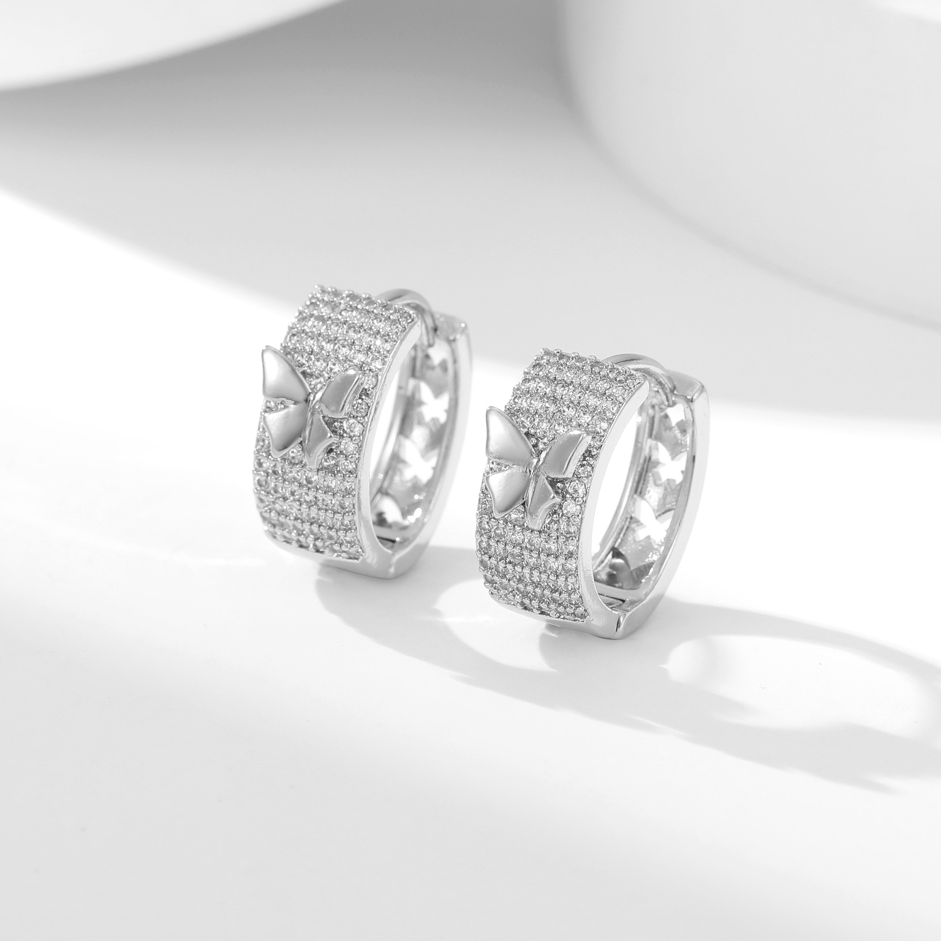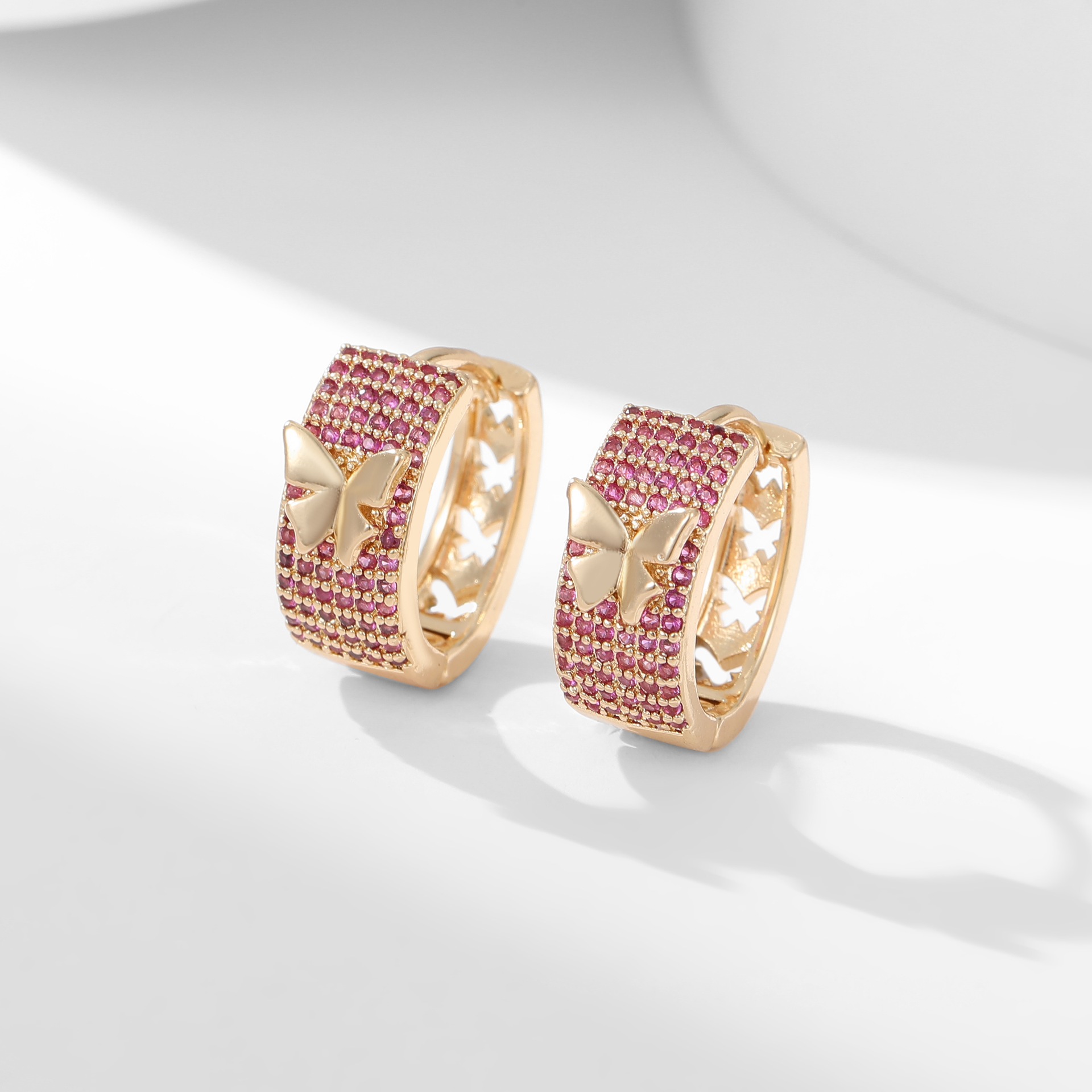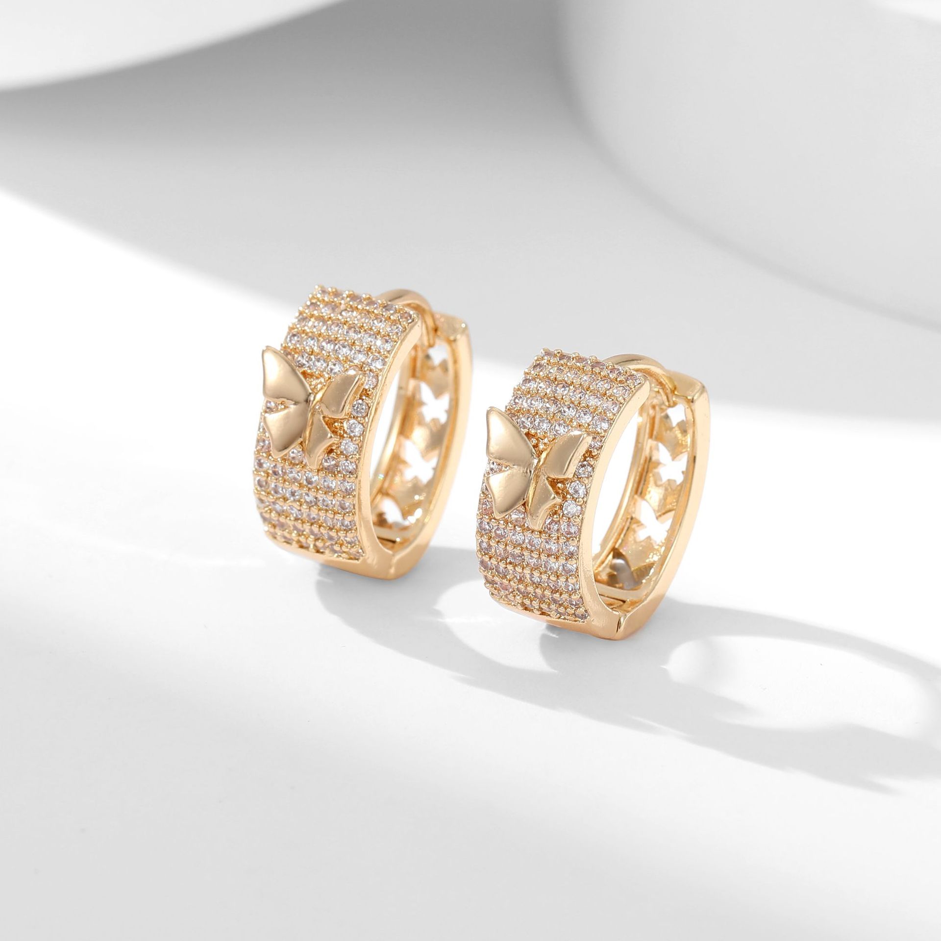スポット外国貿易ジュエリー供給蝶ジルコン銅マイクロイヤリング女性のイヤリング工場直接卸売ジュエリー