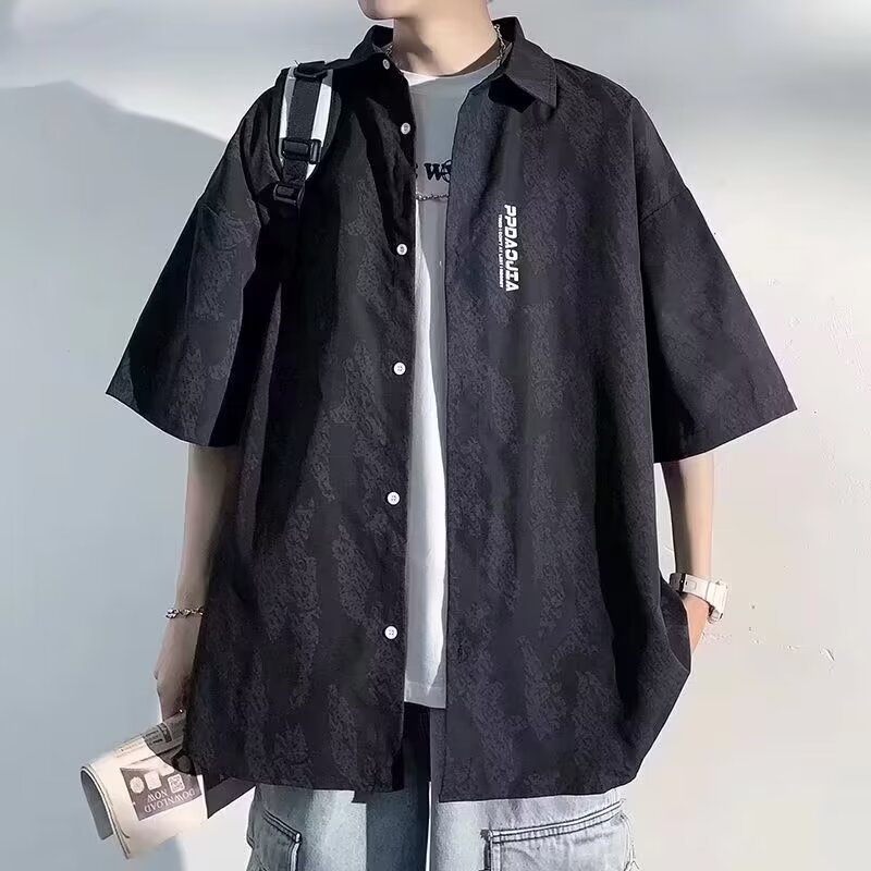 国风短袖衬衫男士夏季日系寸衫感男装宽松上衣新中式衬衣薄款