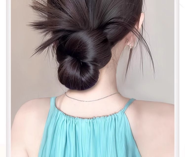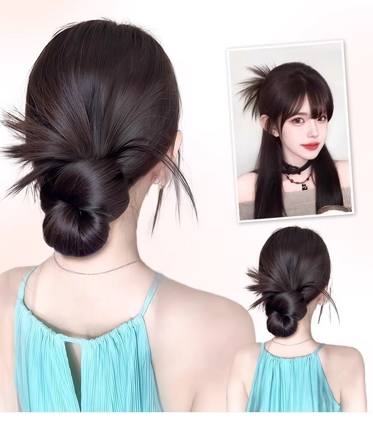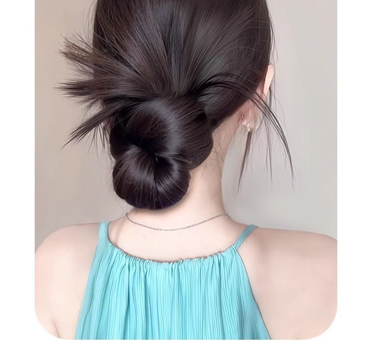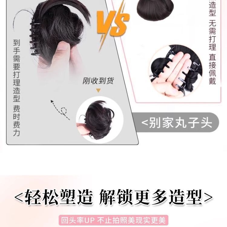 丸子头假发抓夹黑发圈鸡毛花苞头氛围感盘发自然蓬松低扎假发包