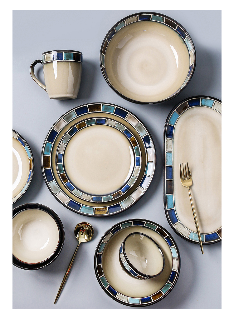 クリエイティブアメリカン西洋食器プレートとボウルセットディッシュプレートステーキプレートパスタプレート家庭用食事ボウルヌードルボウル深皿