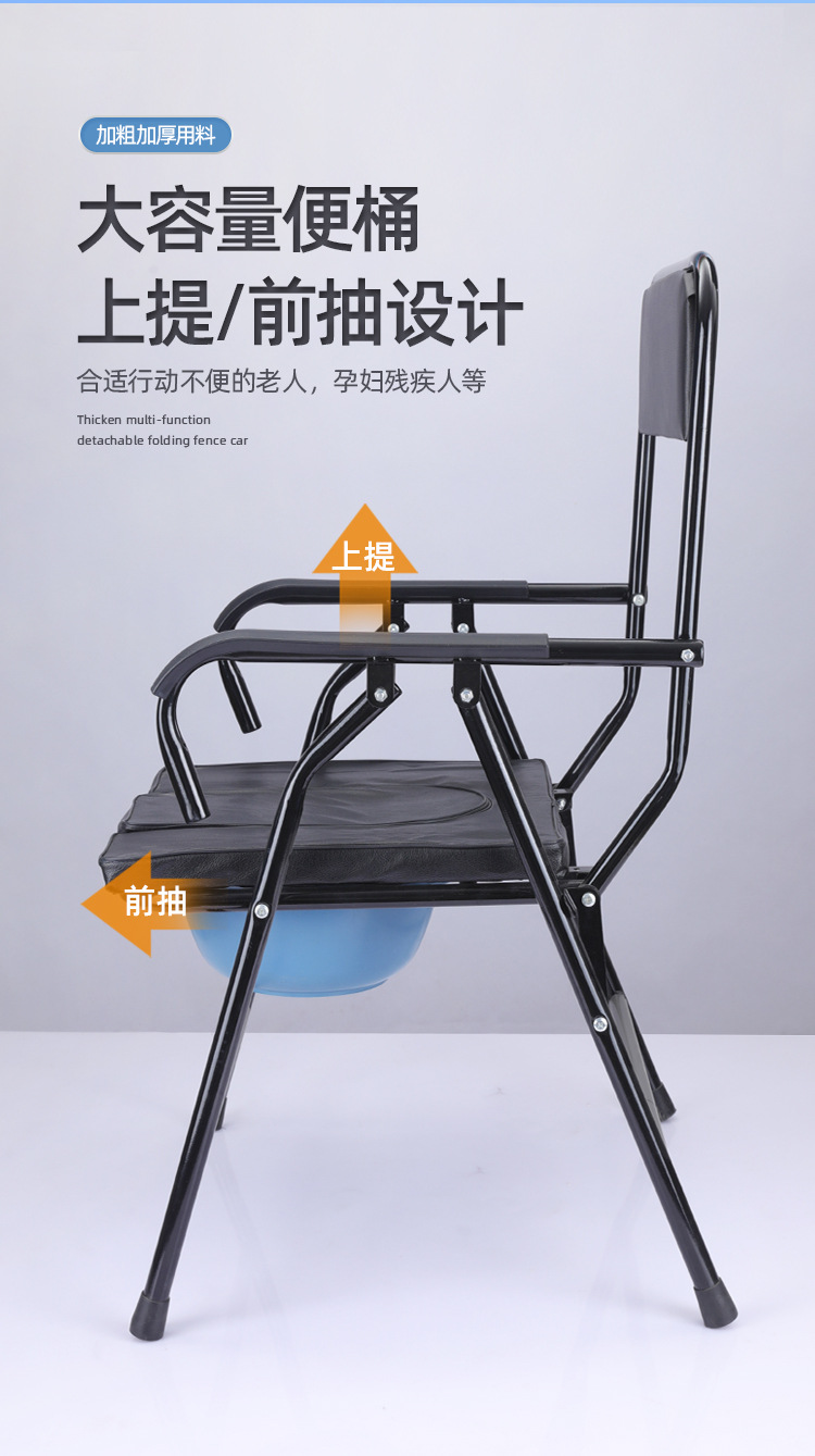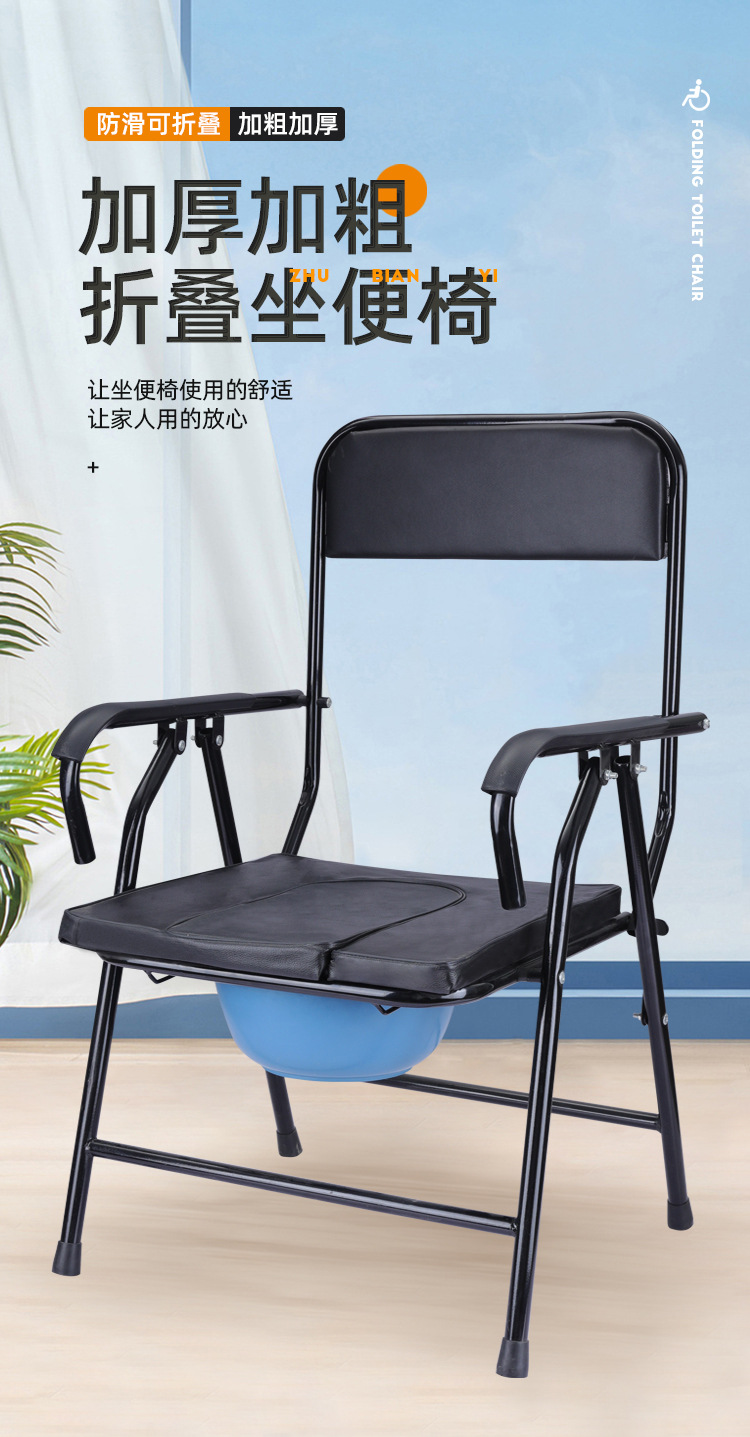 厚みのあるスチール家庭用折りたたみトイレチェアトイレ障害者用モバイルトイレチェアスツール高齢者用トイレチェア