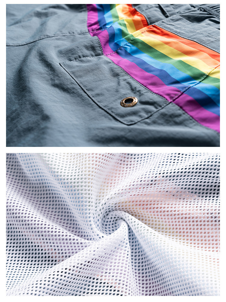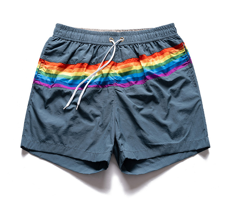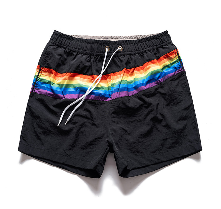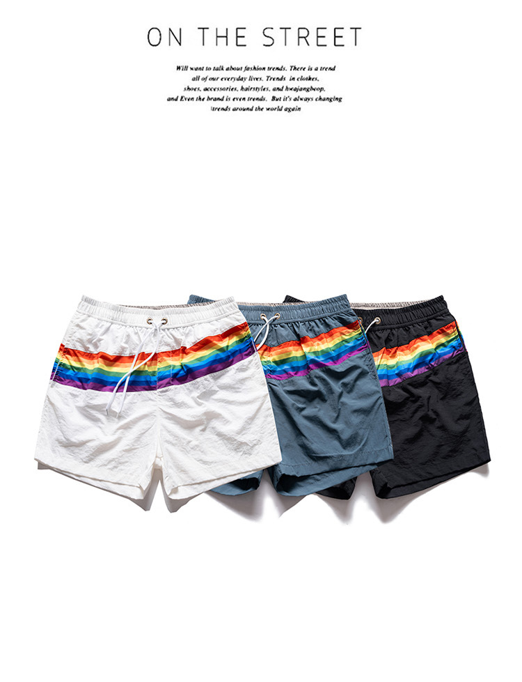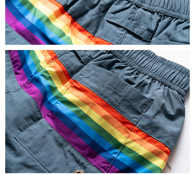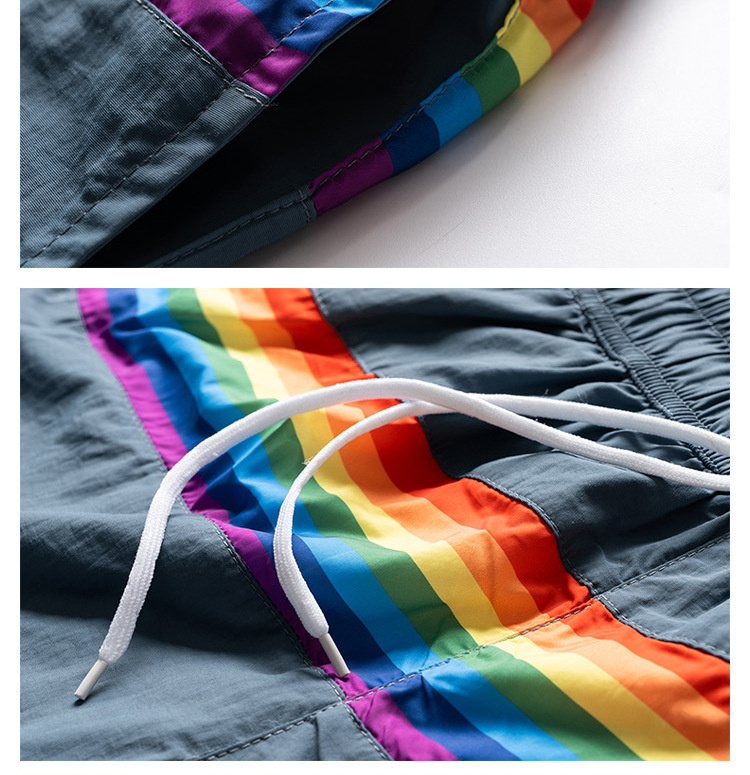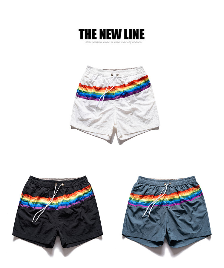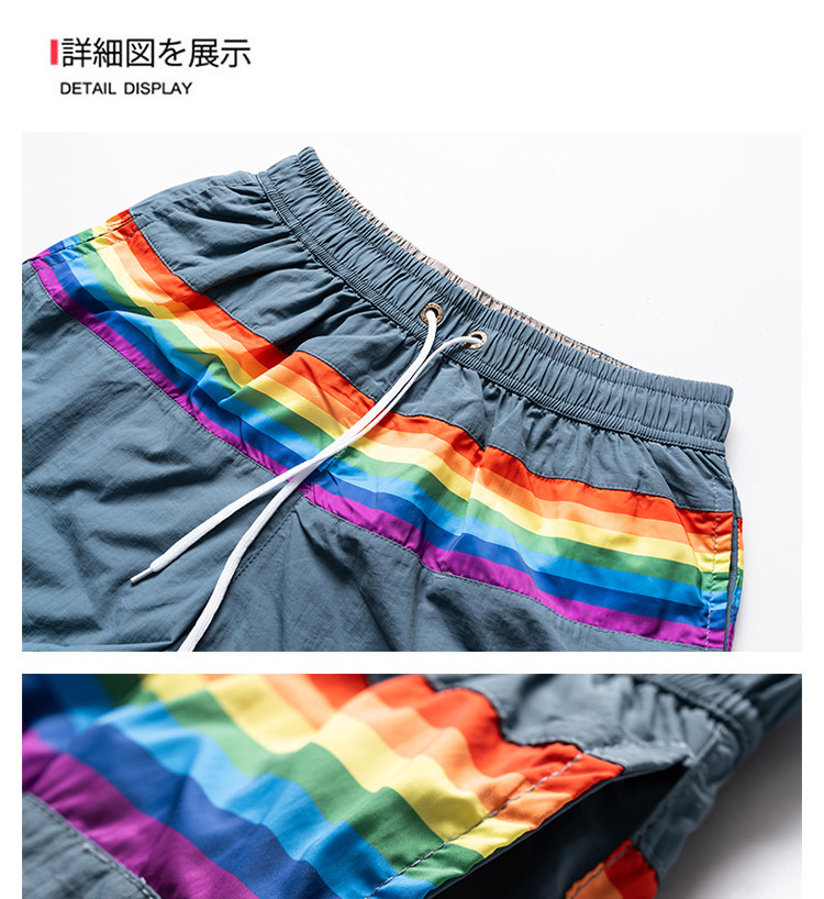 Amazon カラフルなストライププリント 3 セクションショーツメンズ貿易ファッションビーチスポーツショーツ裏地薄いカジュアルパンツ女性用