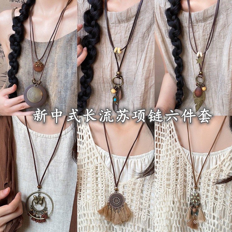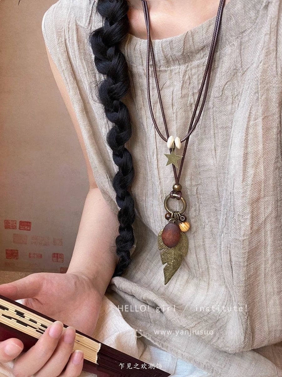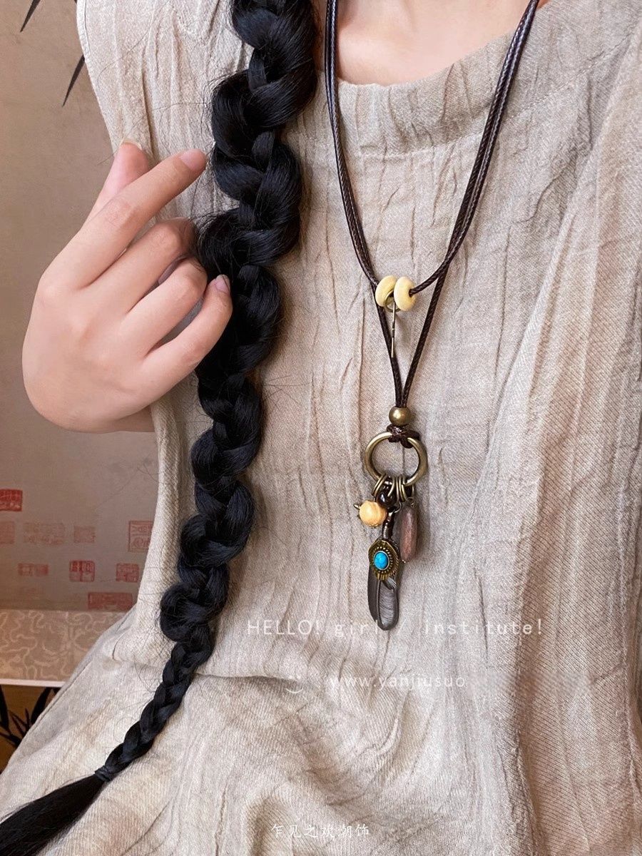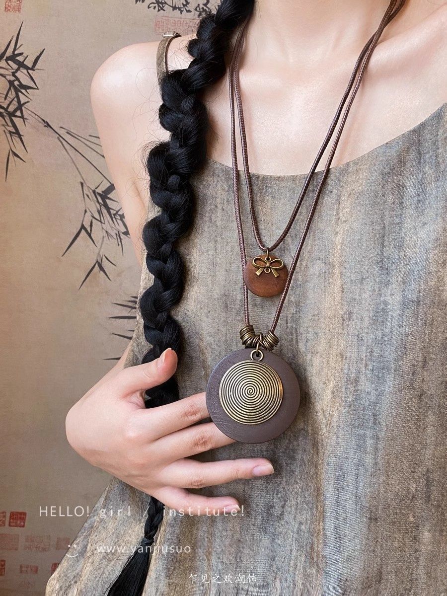 黒縄円環ペンダントの長いネックレス女性新中国式デザイン高級セーターチェーン