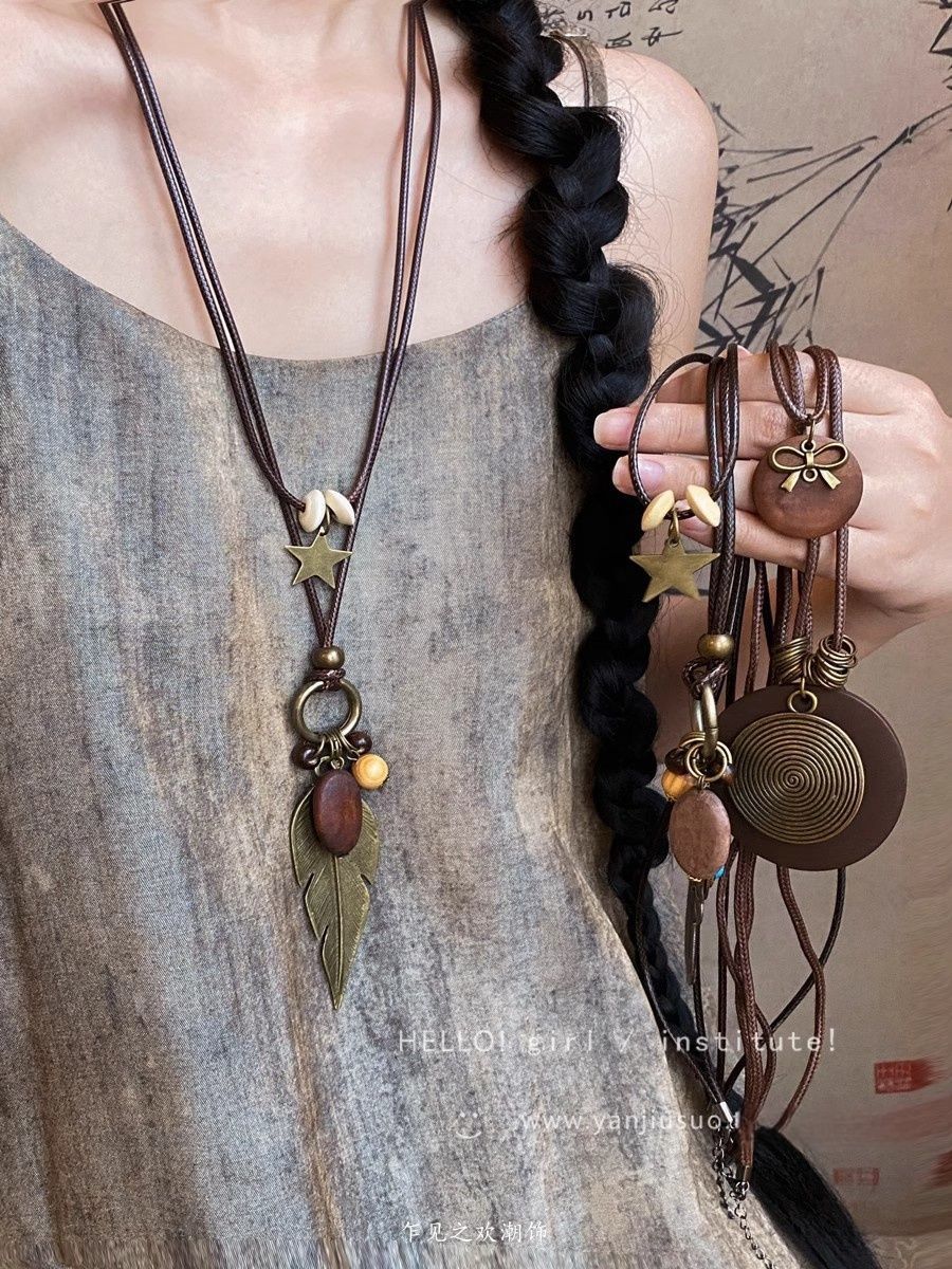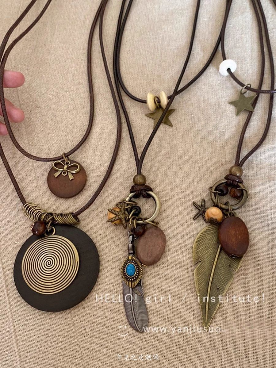ブロンズリーフネックレス,ブロンズフェザーネックレス,ブロンズ スレッド ディスク ネックレス
