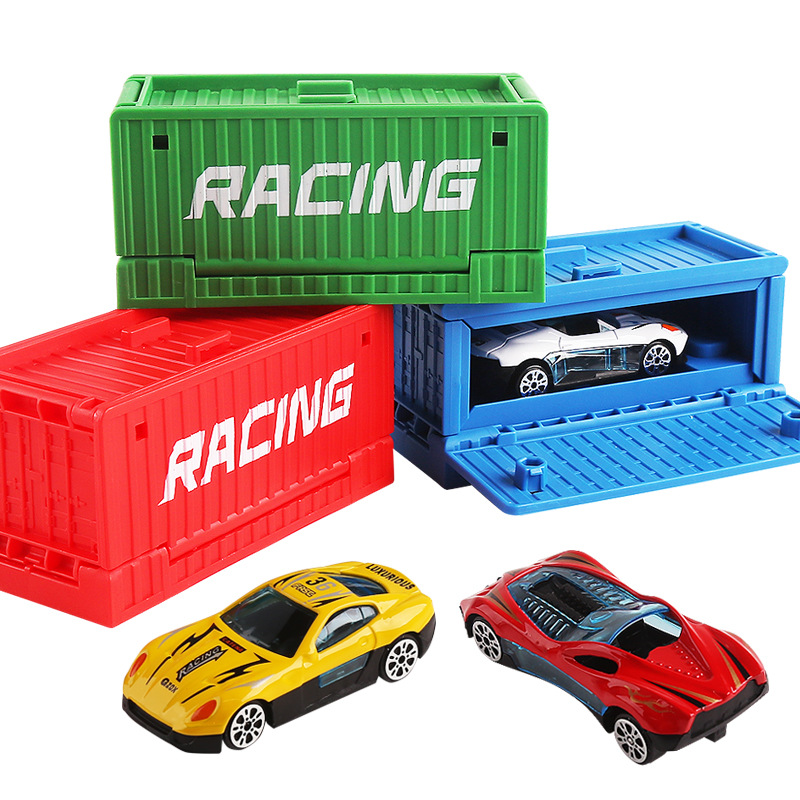1:64仿真集装箱迷你车带收纳盒弹射惯性赛车对战竞技儿童模型玩具