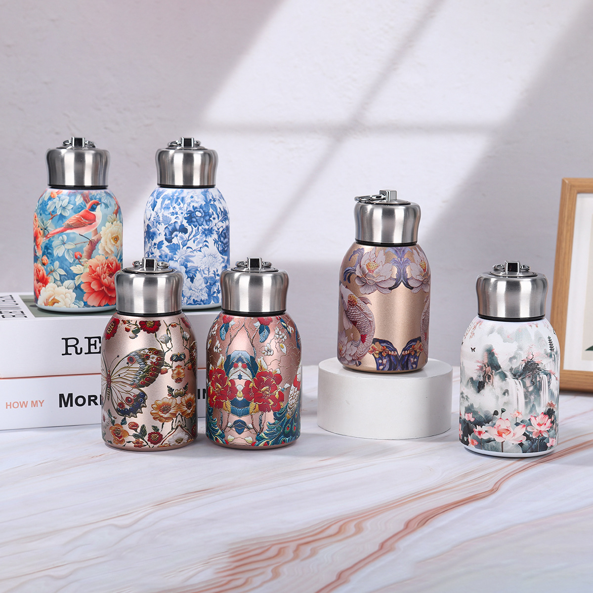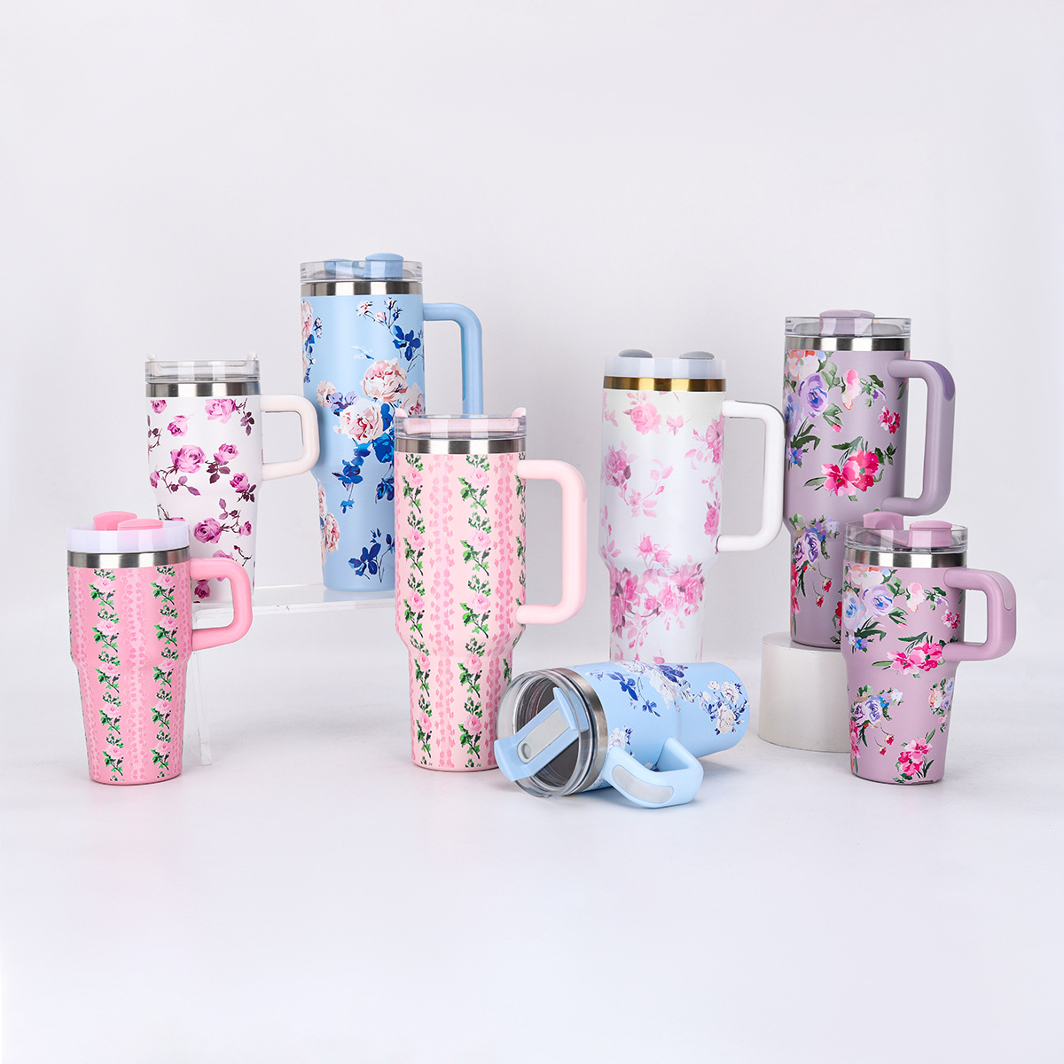 高颜値316ステンレス花びら保温カップ屋外携帯ハンドルカップクリエイティブ女子カップルカップ