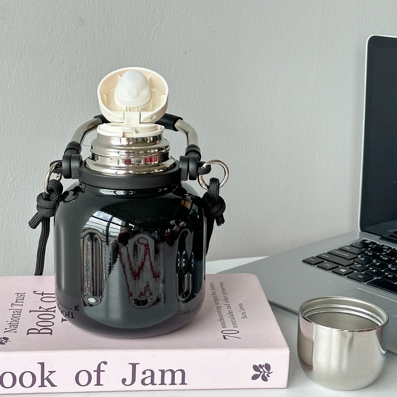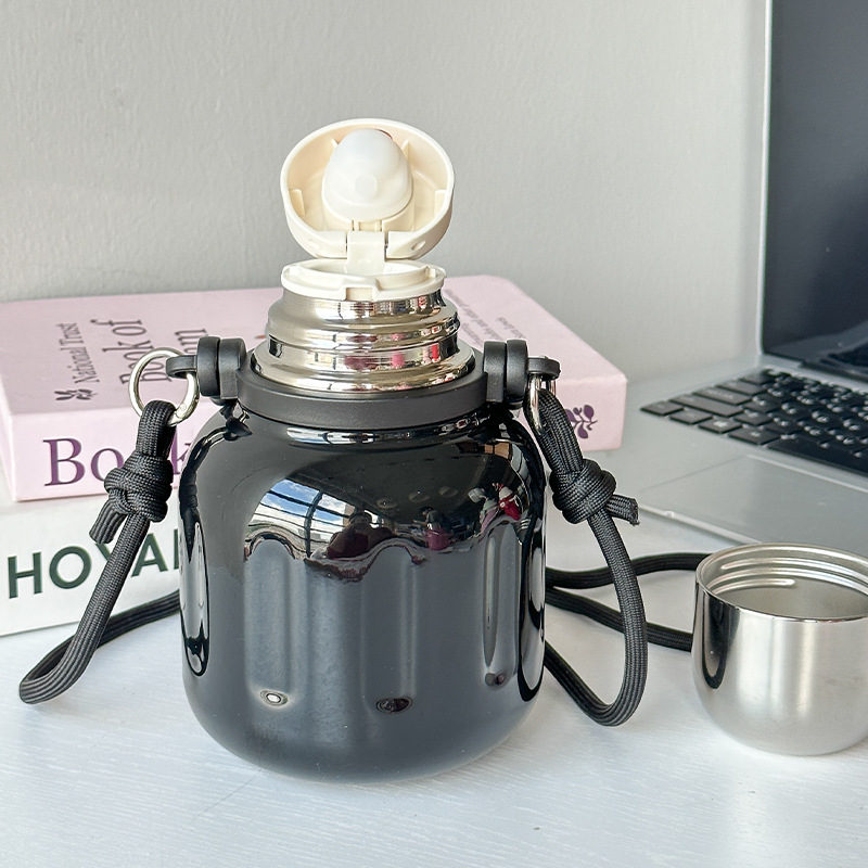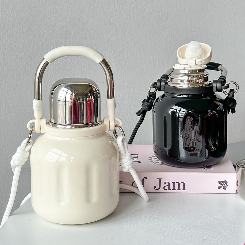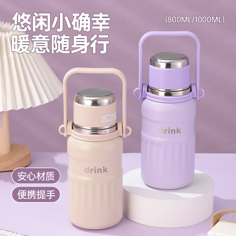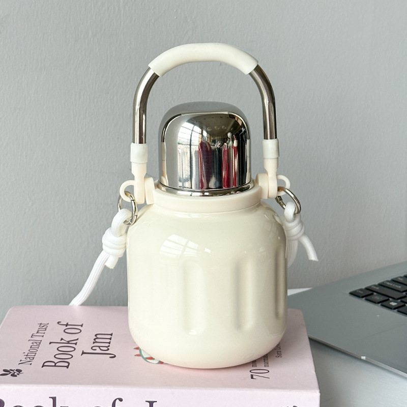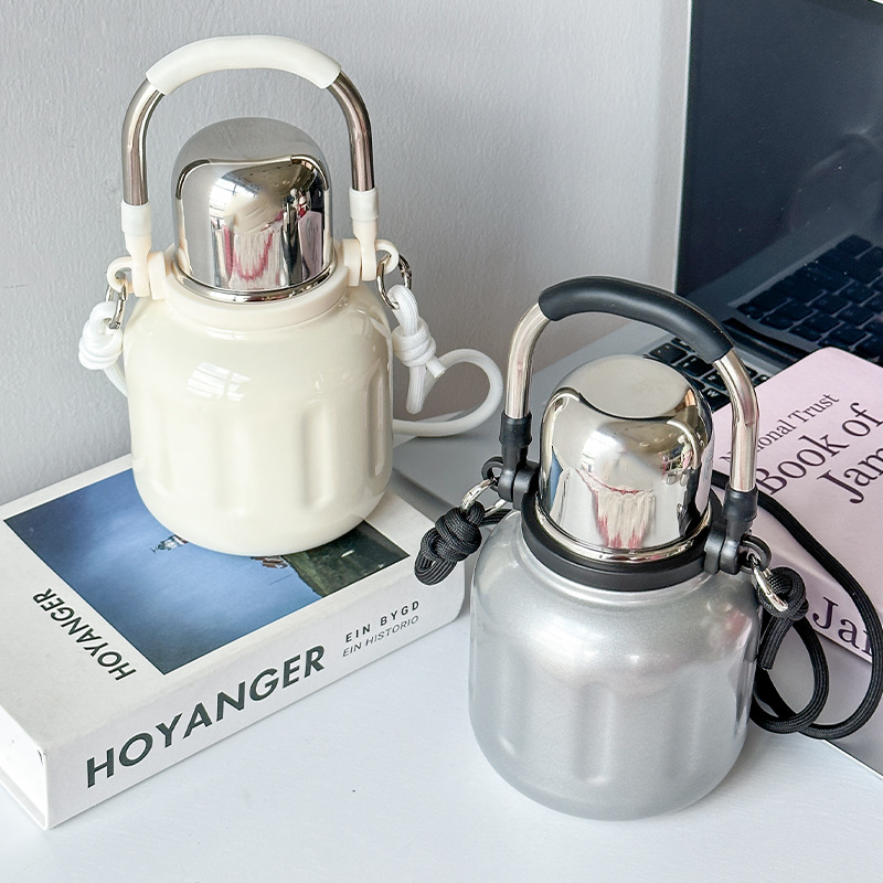 高颜値大容量保温カップ女316ステンレス携帯保温カップ移動車カップハンドル付き