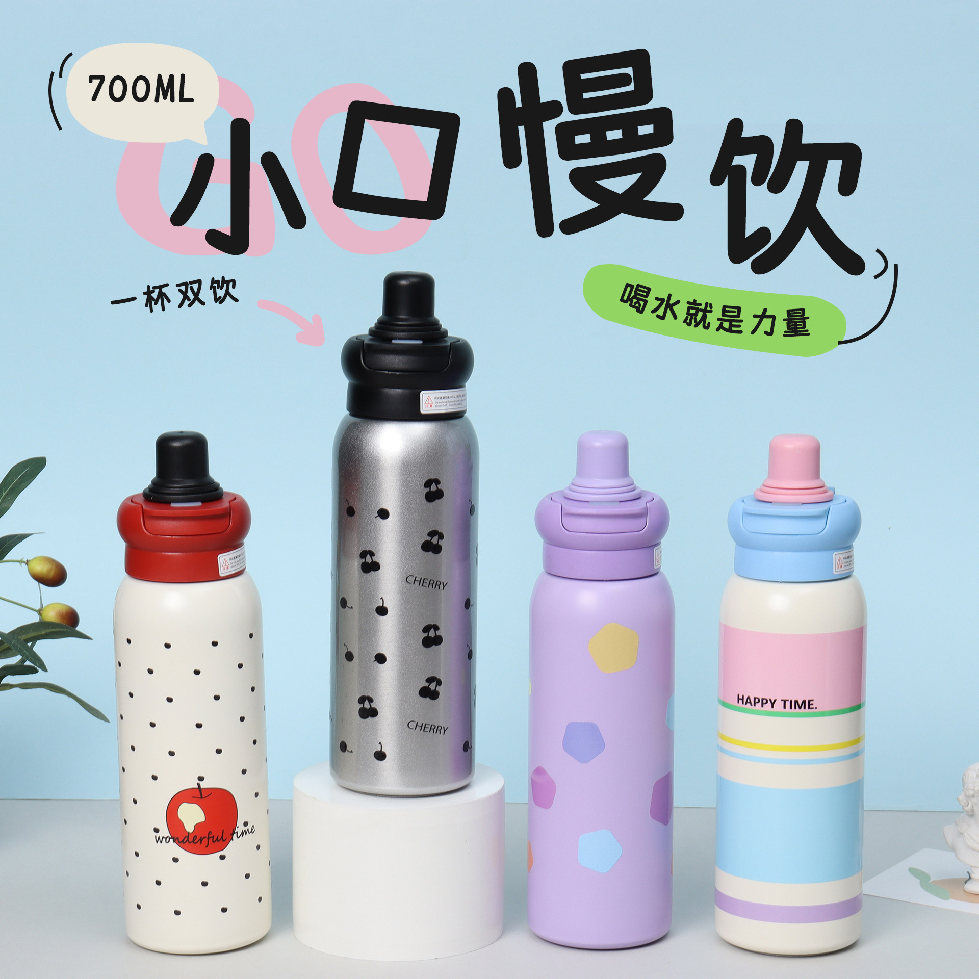 新しいドーパミン乳首カバーストローカップ、見栄えの良い女の子用ダブルドリンク魔法瓶カップ、屋外用ロープスポーツウォーターカップ