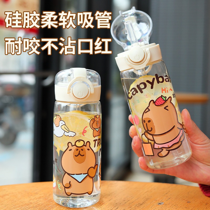 かわいい漫画 Capibala プラスチックカップかわいい子供用ダブルドリンクバウンスカップアウトドアスポーツストローカップ