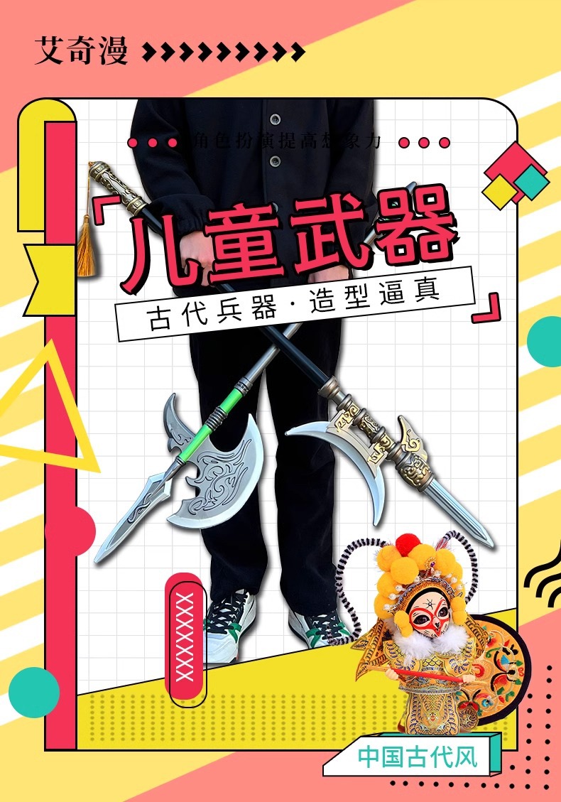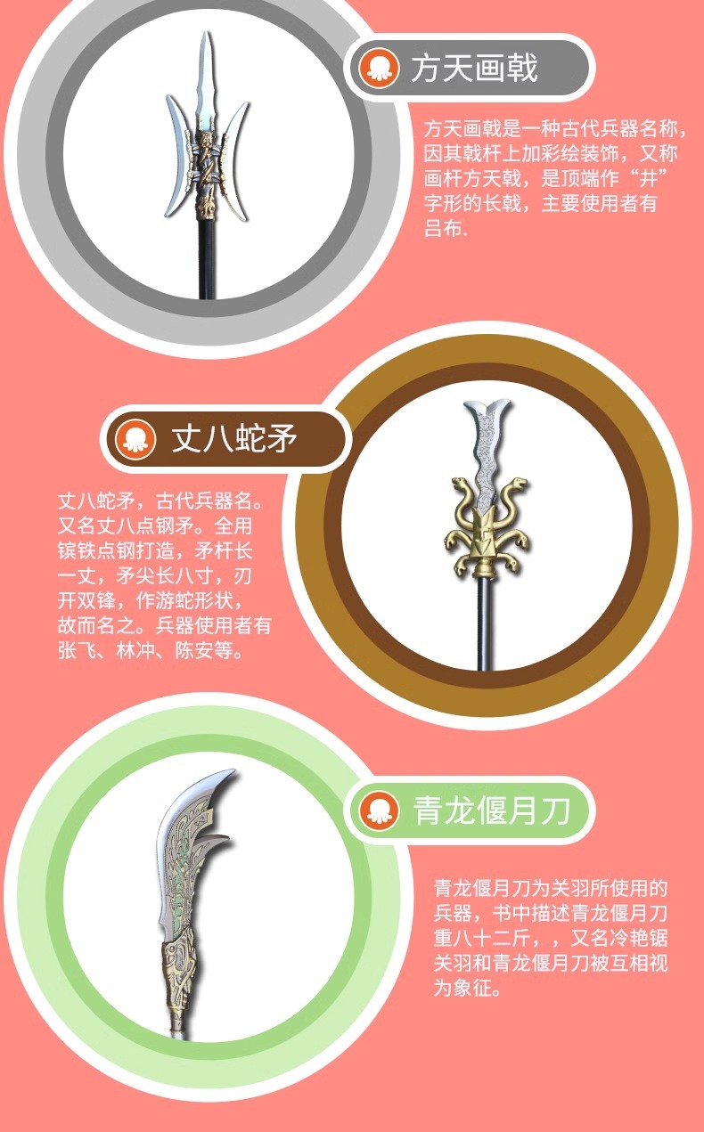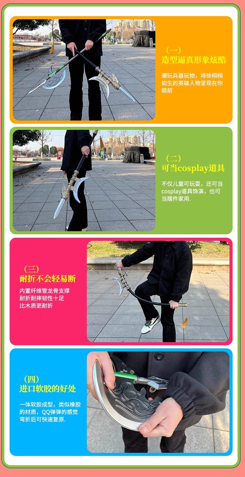 三国十八類兵器のフルセット呂布方天画戟趙雲龍胆銃丈八蛇槍子供用ソフトゴム武器
