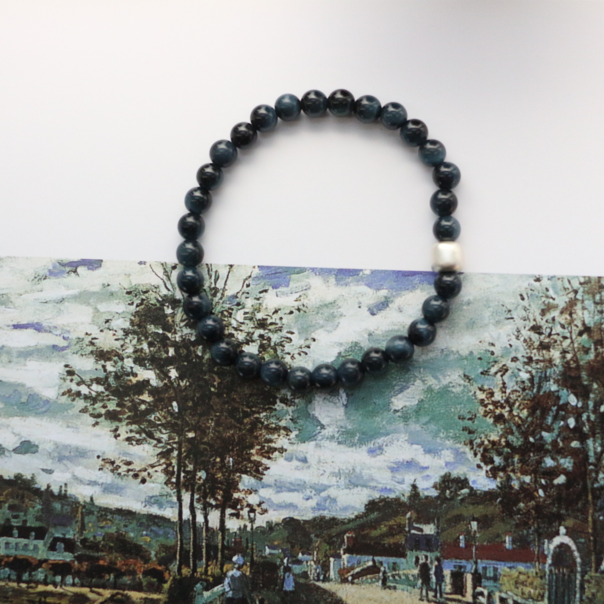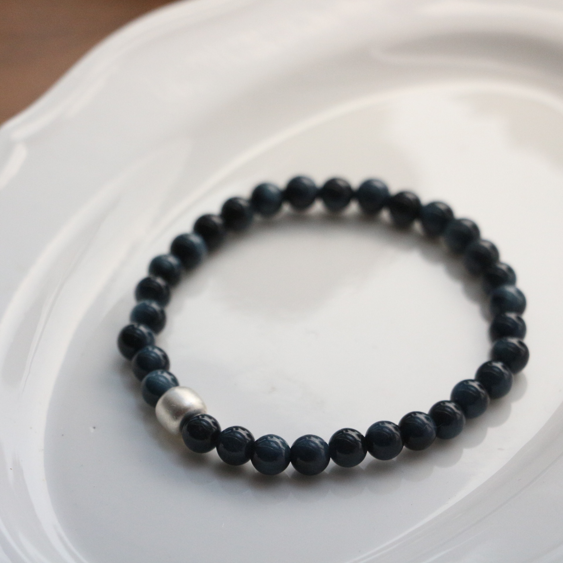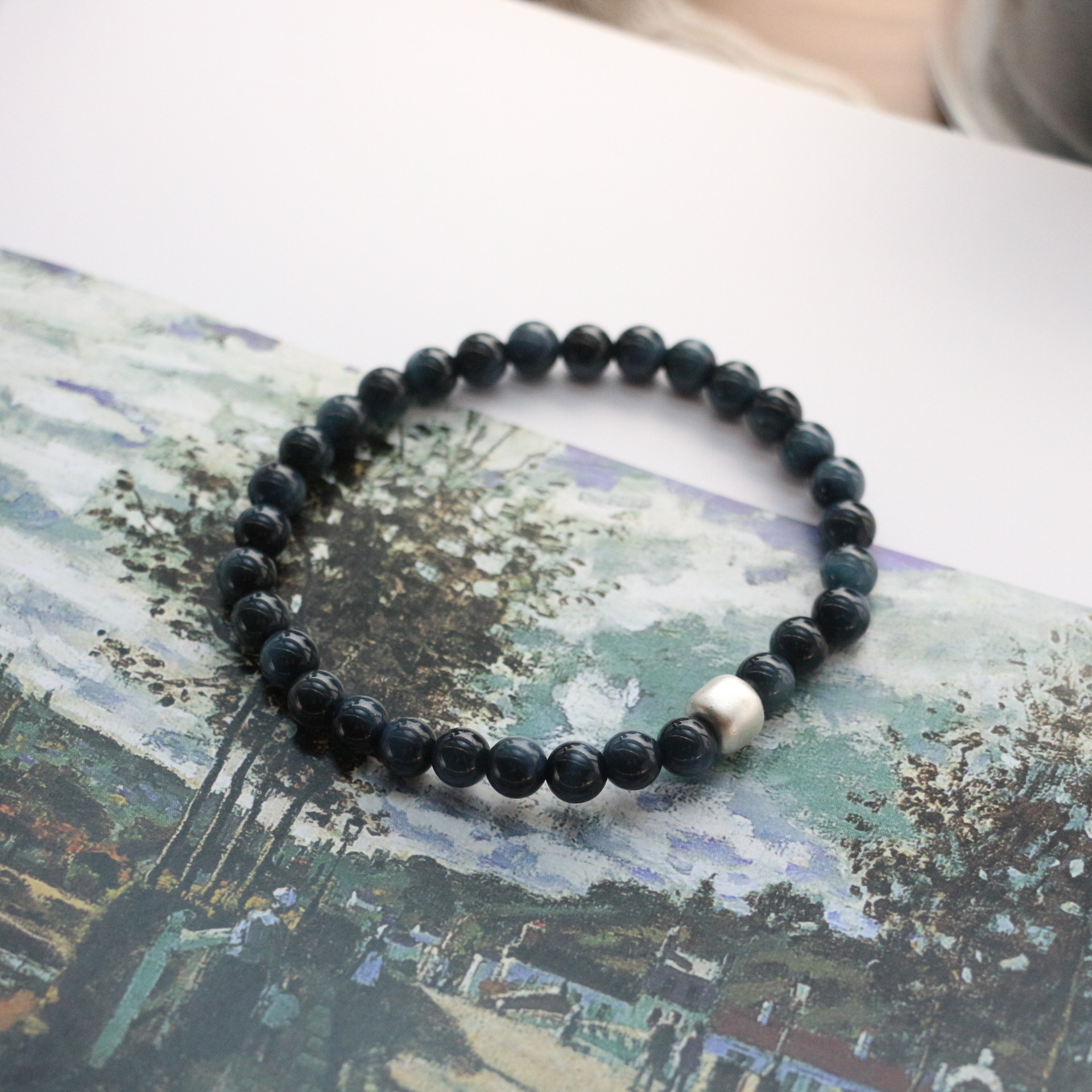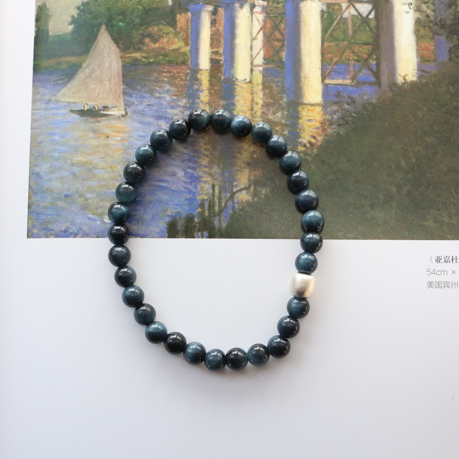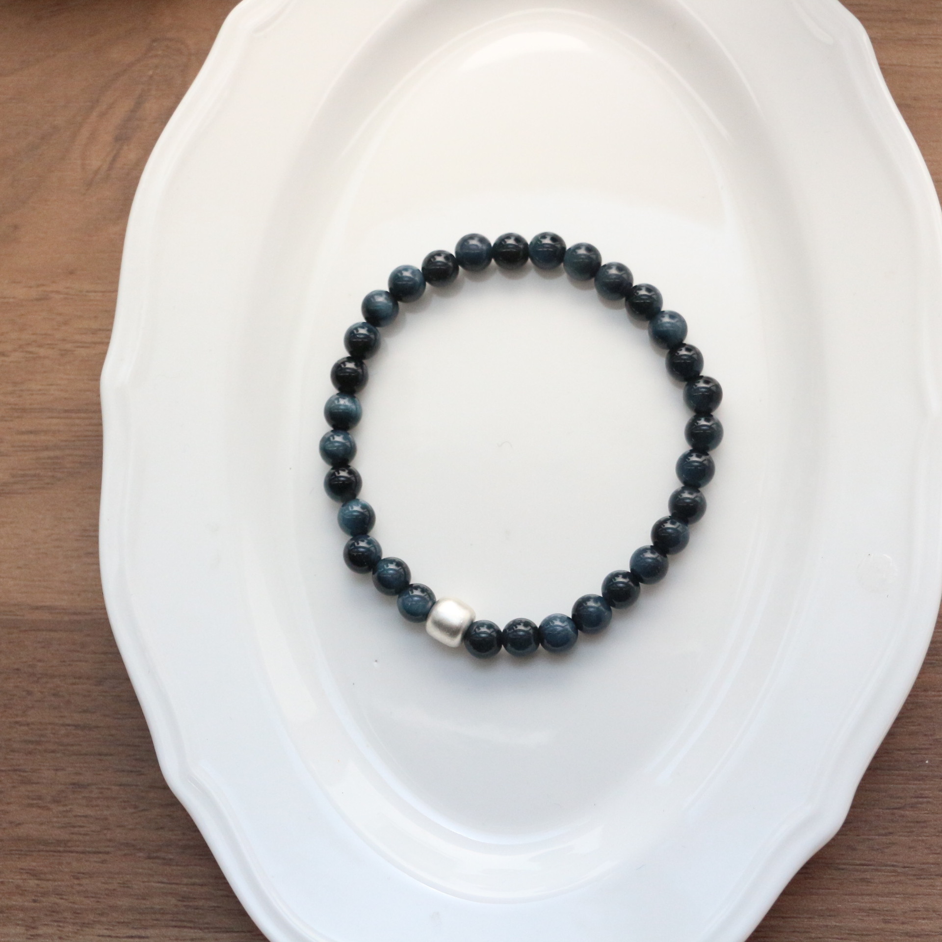 墨青虎眼石手串男女同モデル925銀ブレスレットシンプル基礎モデル天然石ビーズ