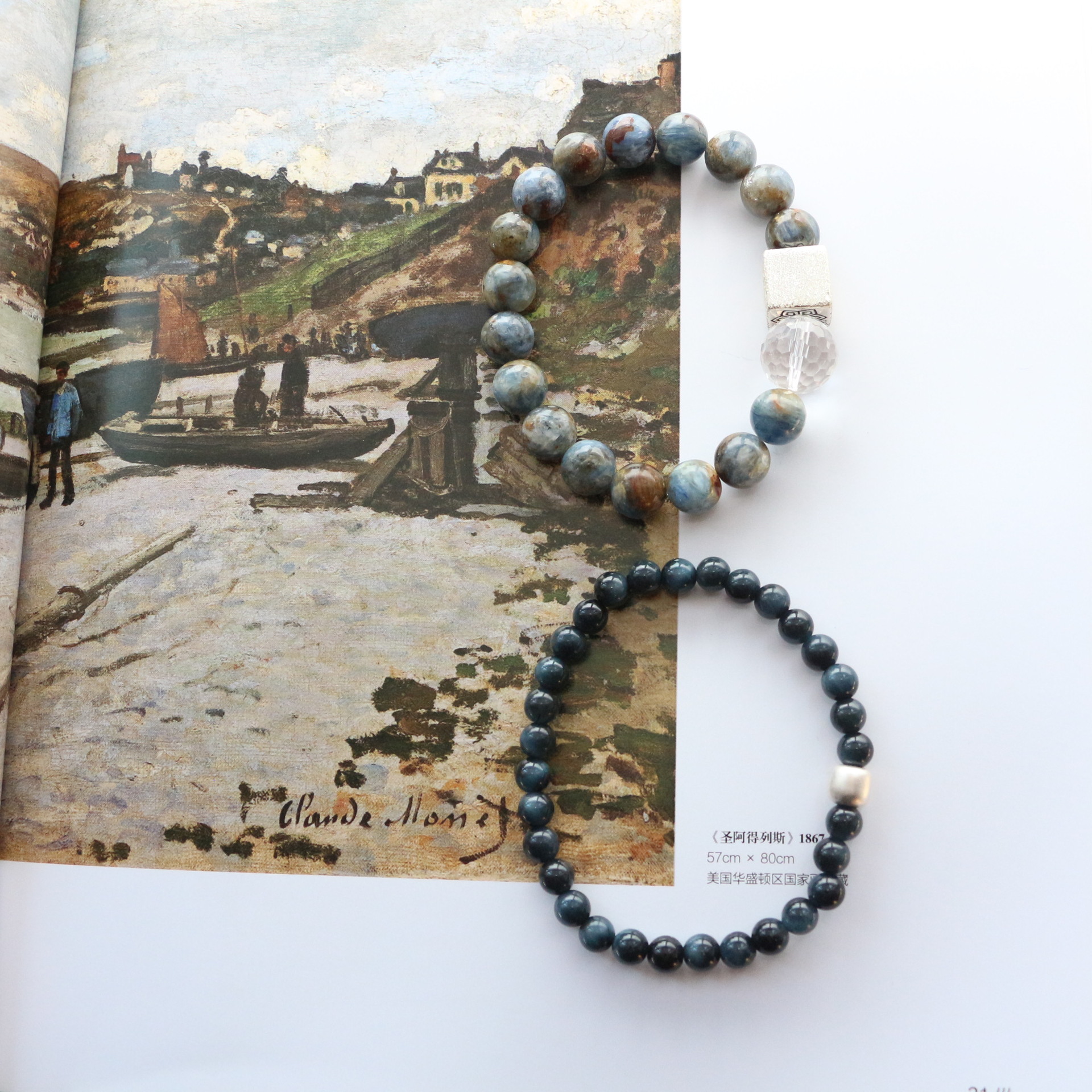 純欲敦煌油絵色藍晶石粗手串太った丸い玉糸925銀糖塊ブレスレット夏の新商品