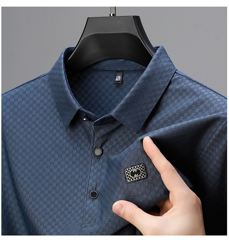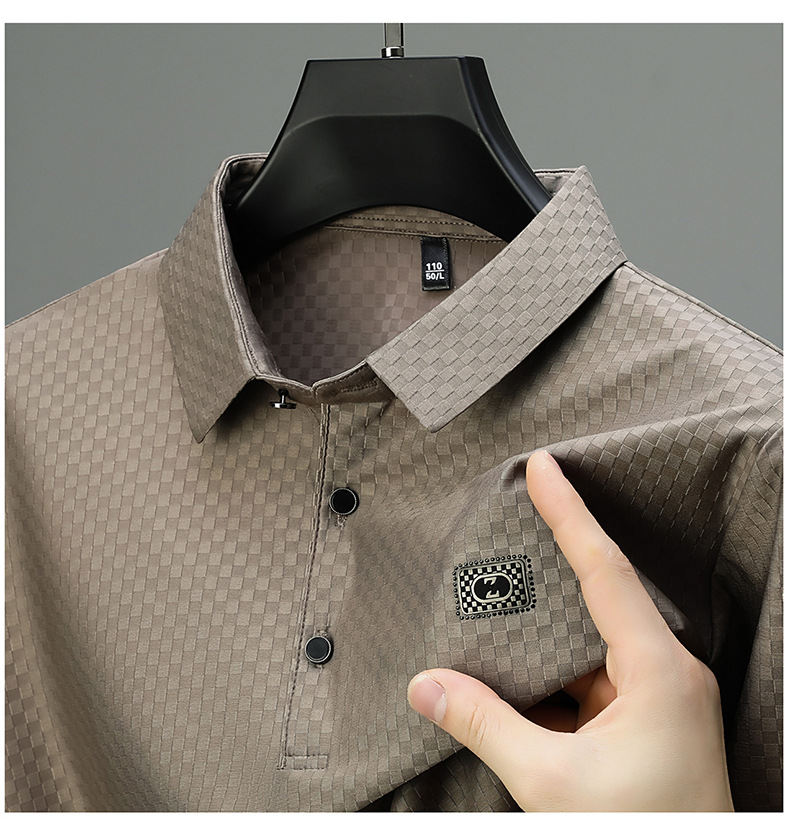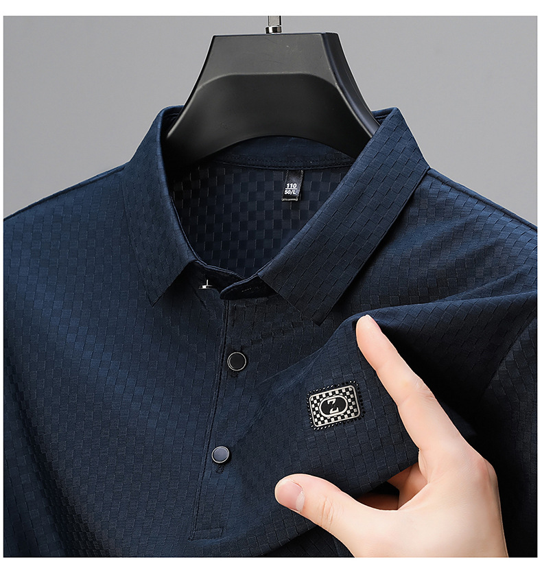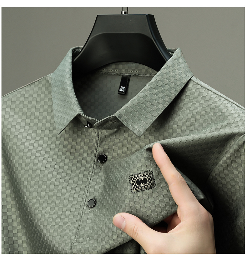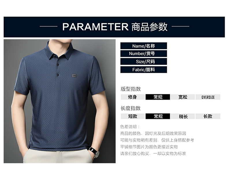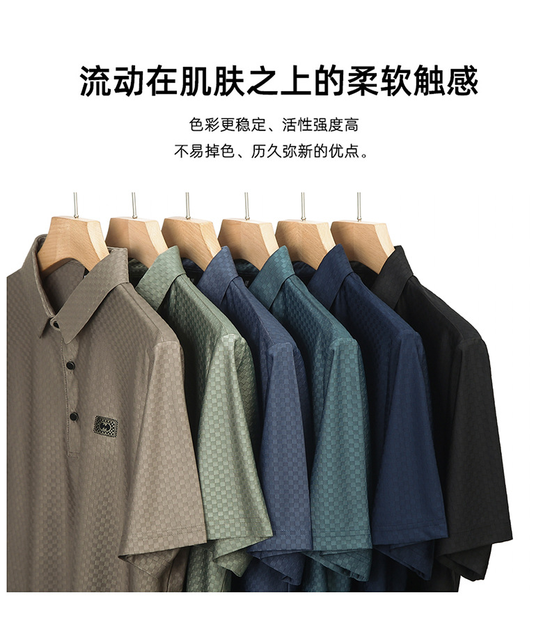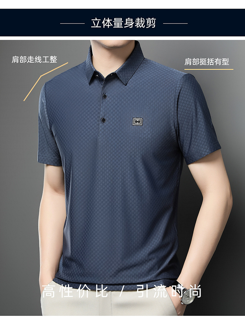 2025夏の新型男性半袖绢糸折り襟poloシャツカジュアルシンプルな男性モデルtネック