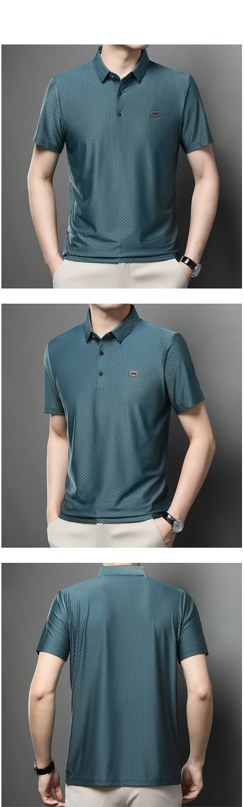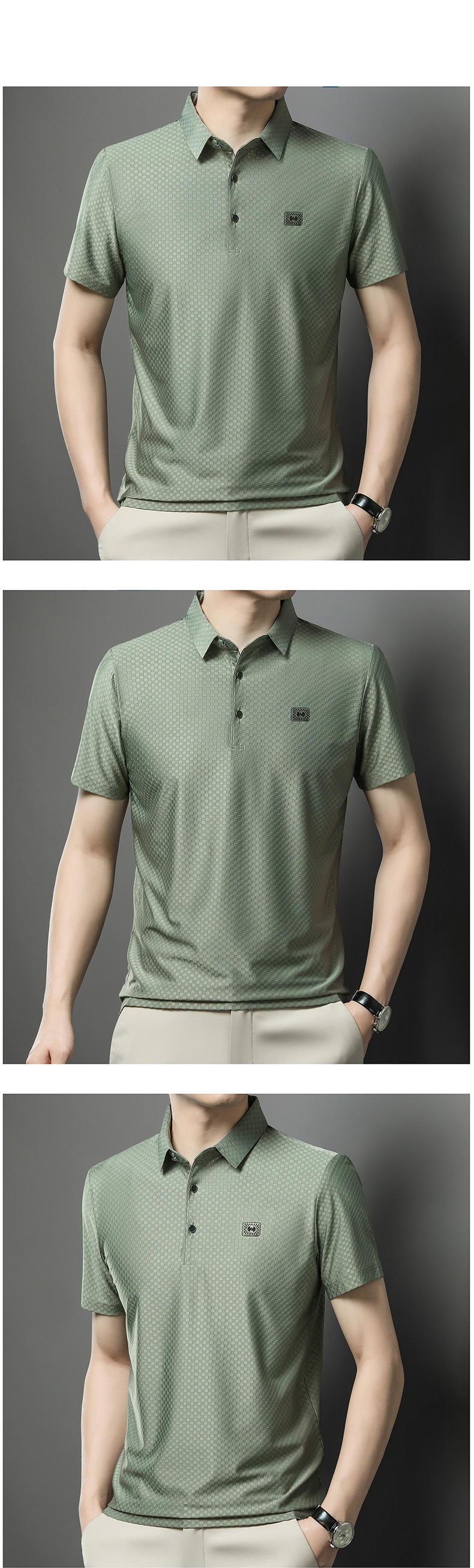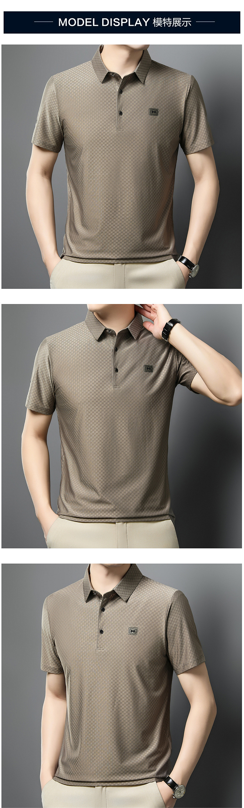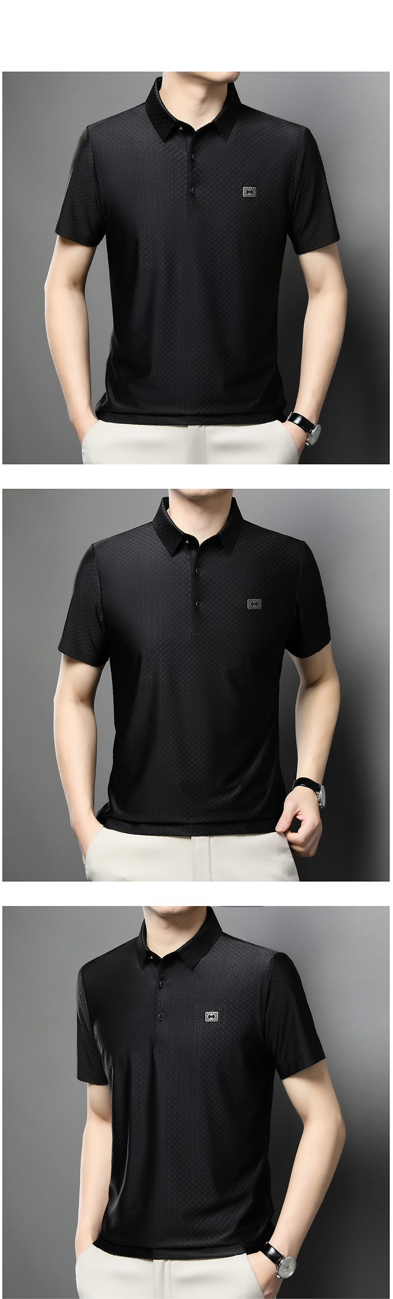 2025夏の新型男性半袖绢糸折り襟poloシャツカジュアルシンプルな男性モデルtネック