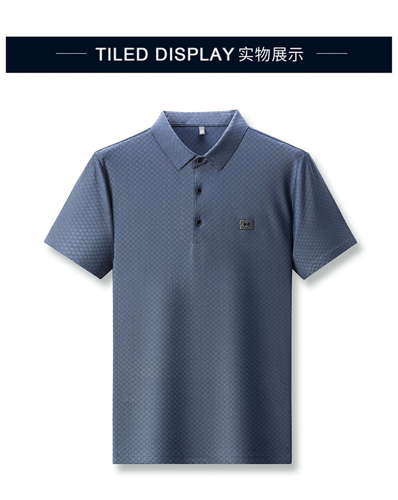 夏の新ビジネスカジュアルプリント半袖Tシャツ、若者と中年男性用、ラペルシンプルメンズポロシャツ、アイスシルククール