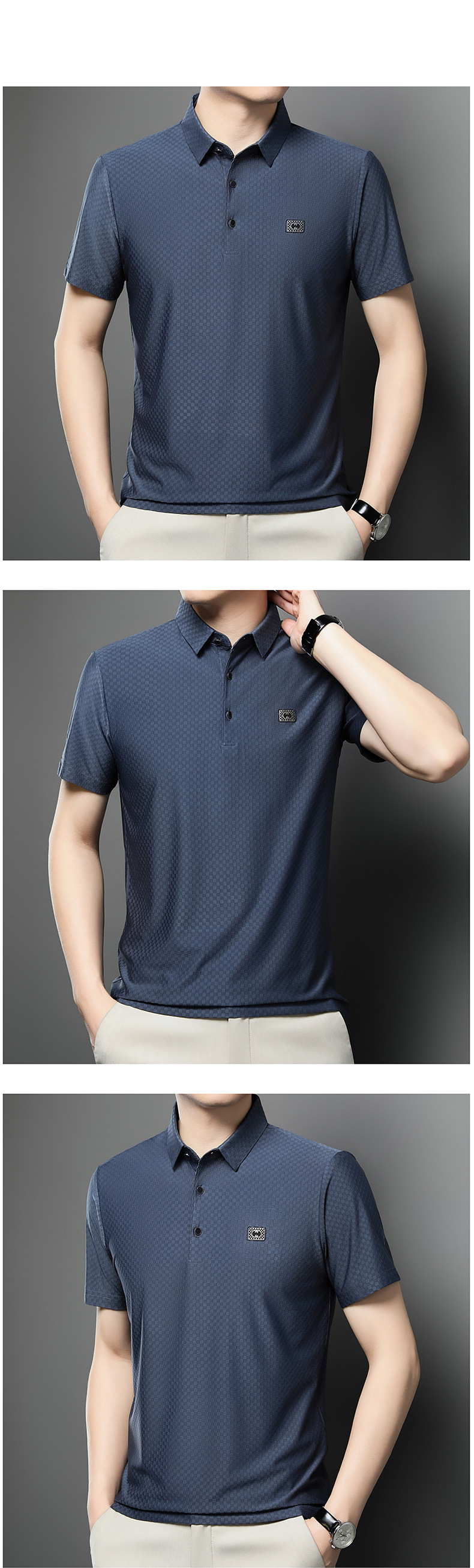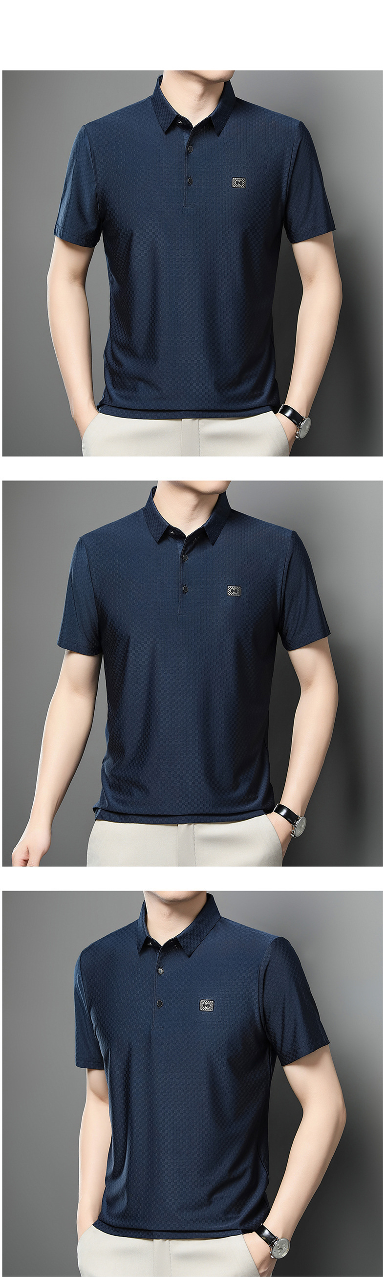 男性の夏の新型シンプルなコンビネーションストレッチtシャツ男性上着クロスボーダー外国貿易アイス薄手半袖poloシャツ