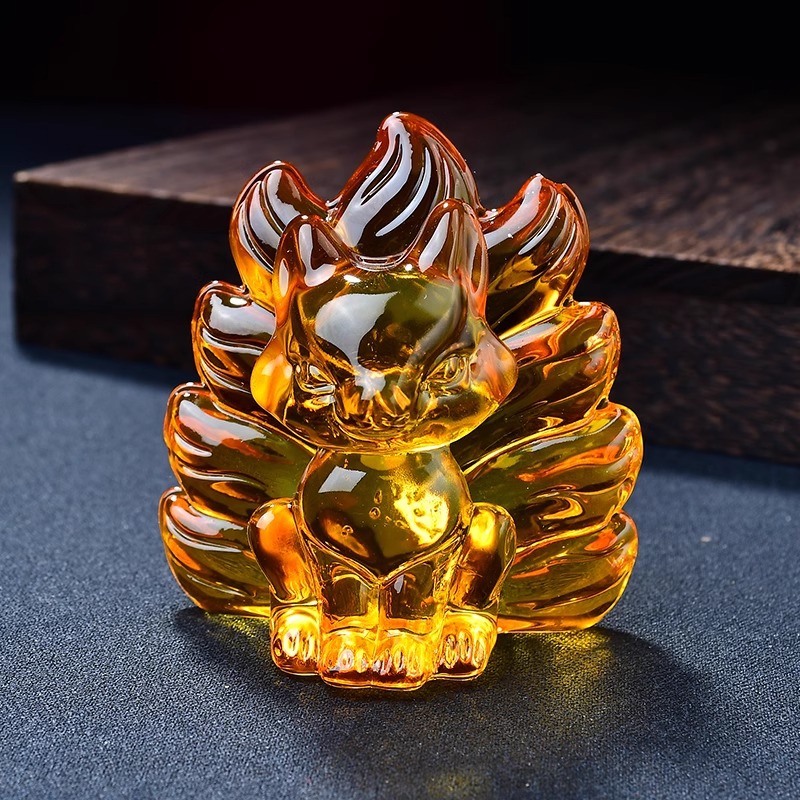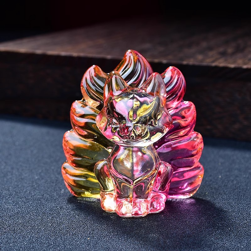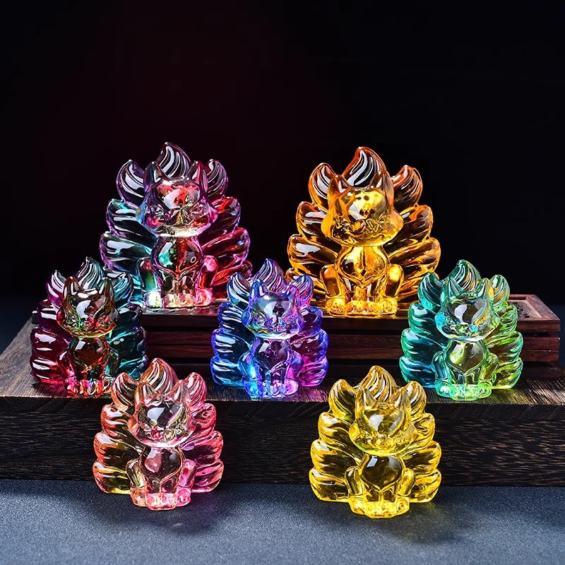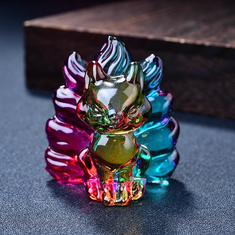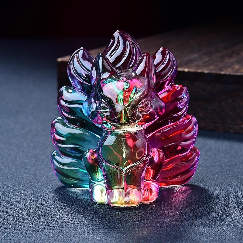 古代ガラスキツネ人形ニッチデザイン家の装飾ガラス九尾キツネの装飾品誕生日ギフト