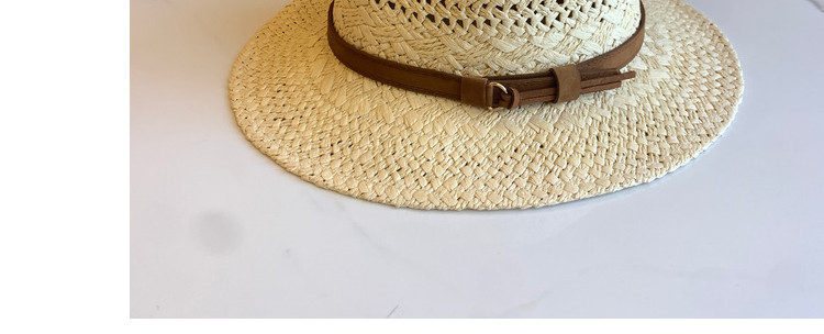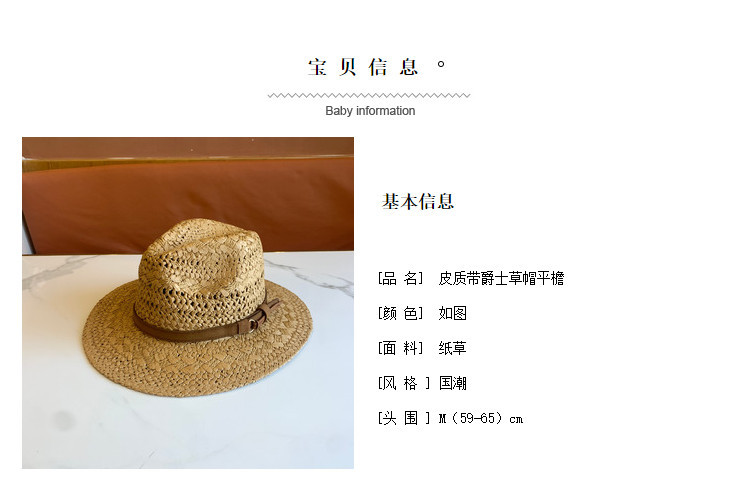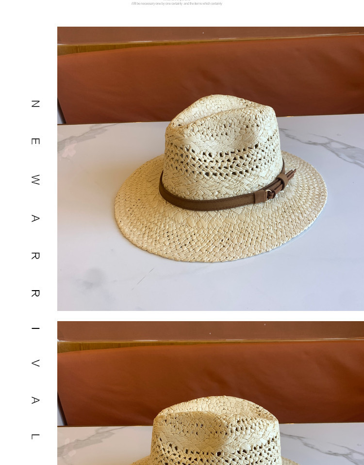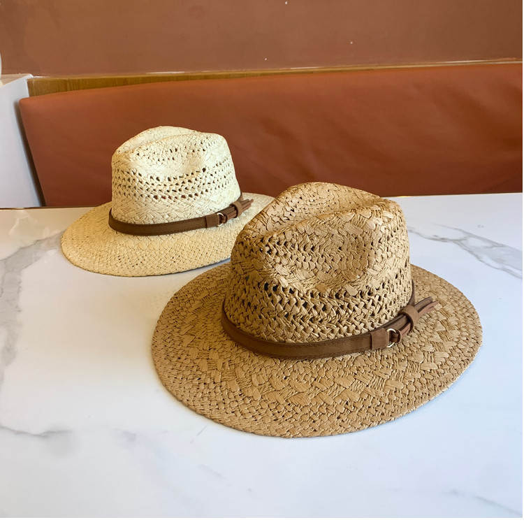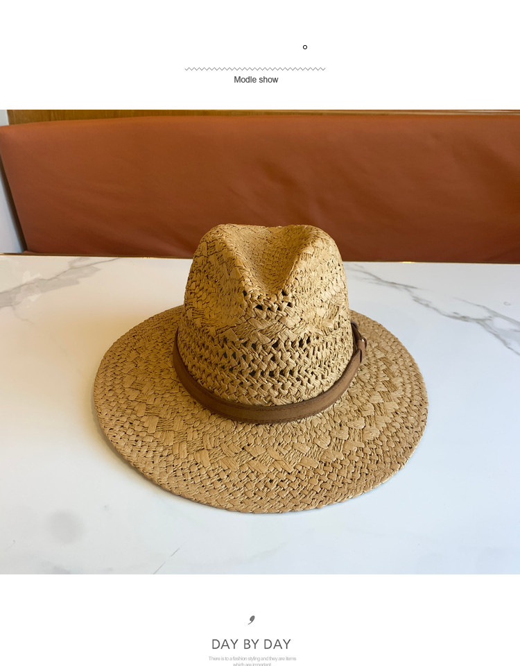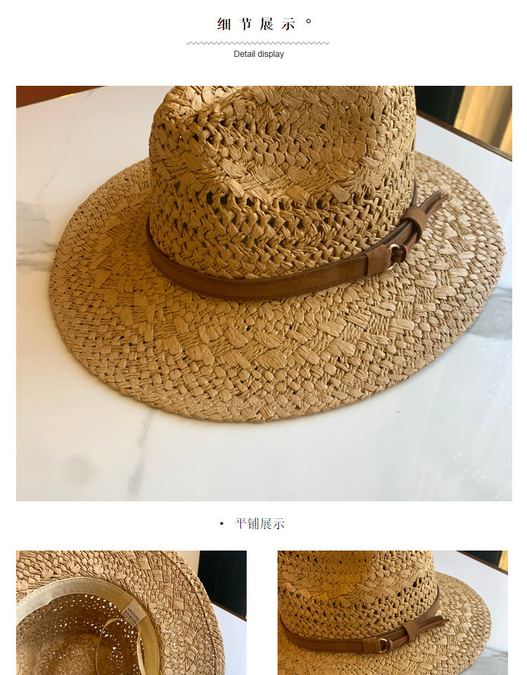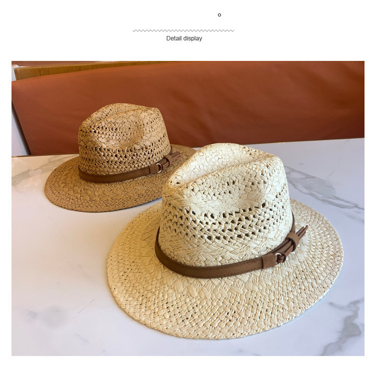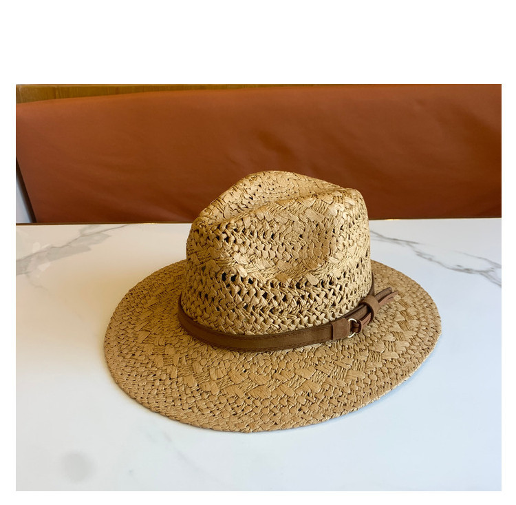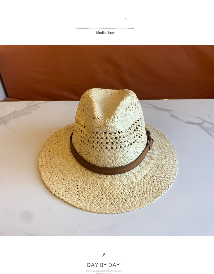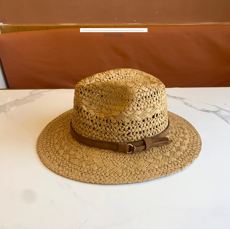 春夏の新ファッションカジュアル手織り中空パターンベルト装飾つば広ジャズハット屋外サンシェード麦わら帽子トレンディ