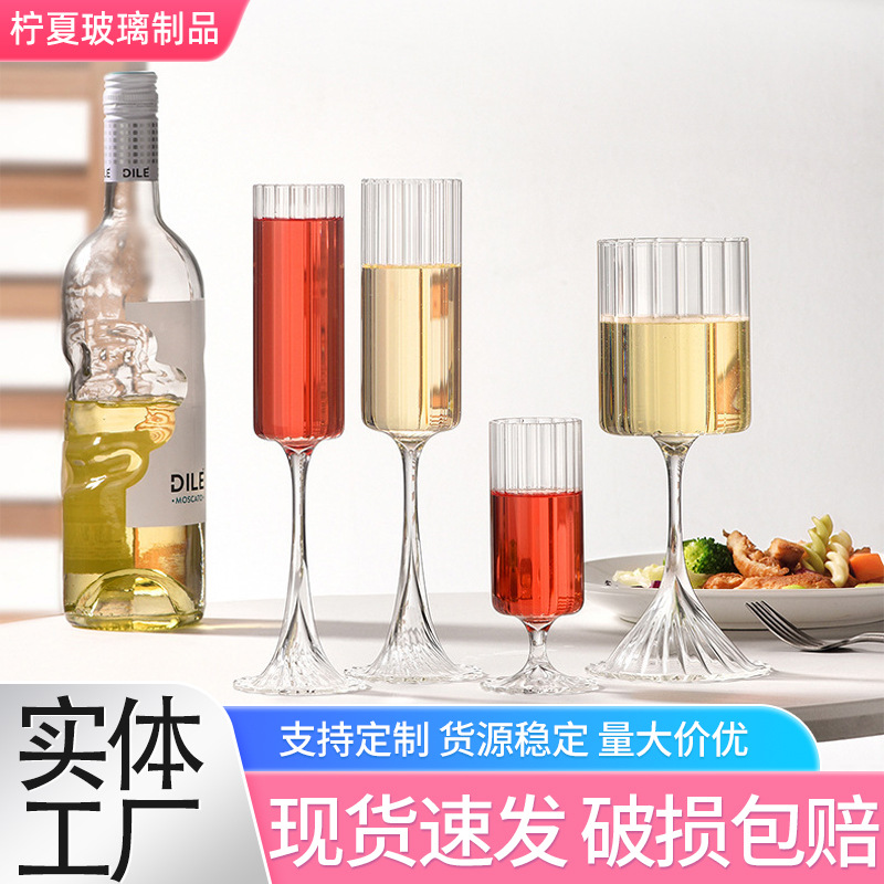 高ホウ素リブシャンパングラスインスタイルストライプゴブレットクリエイティブカクテルグラスシャンパングラスアイスアメリカンコーヒーカップ