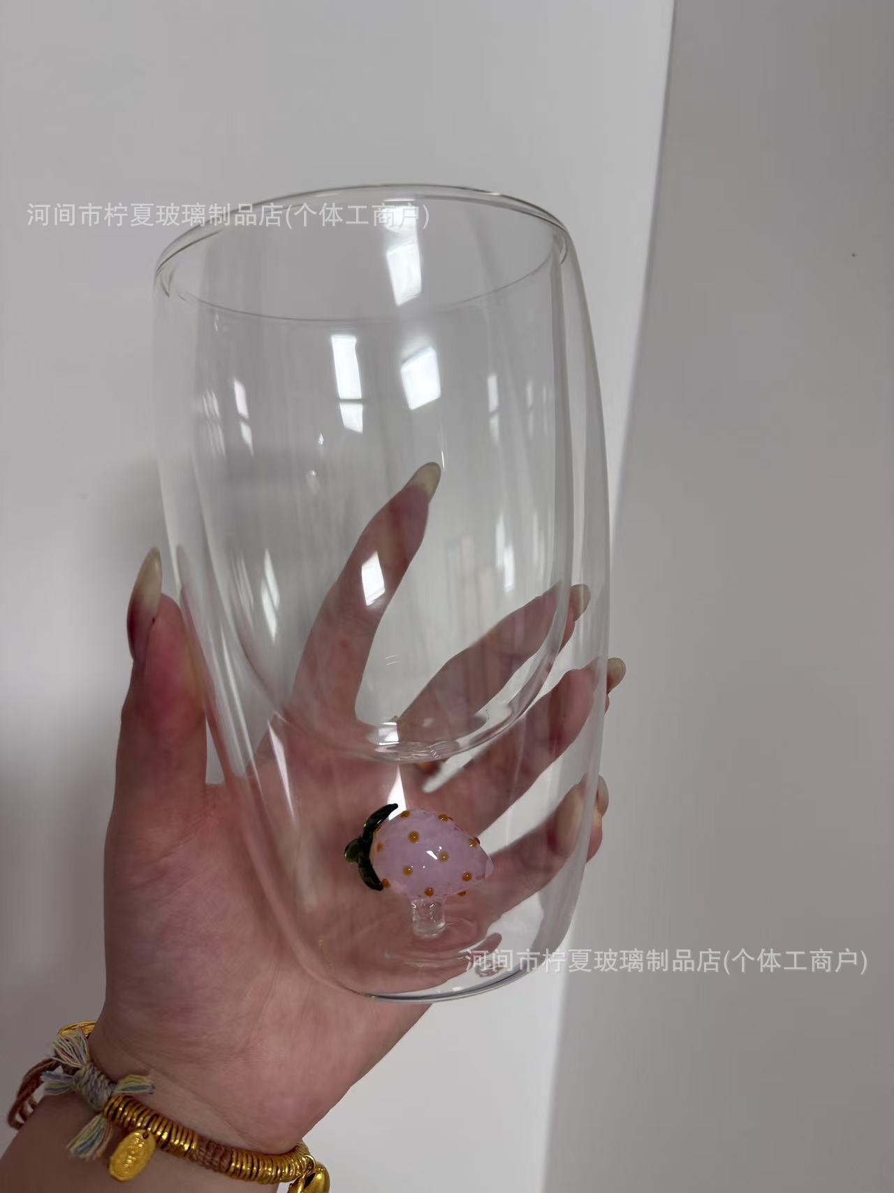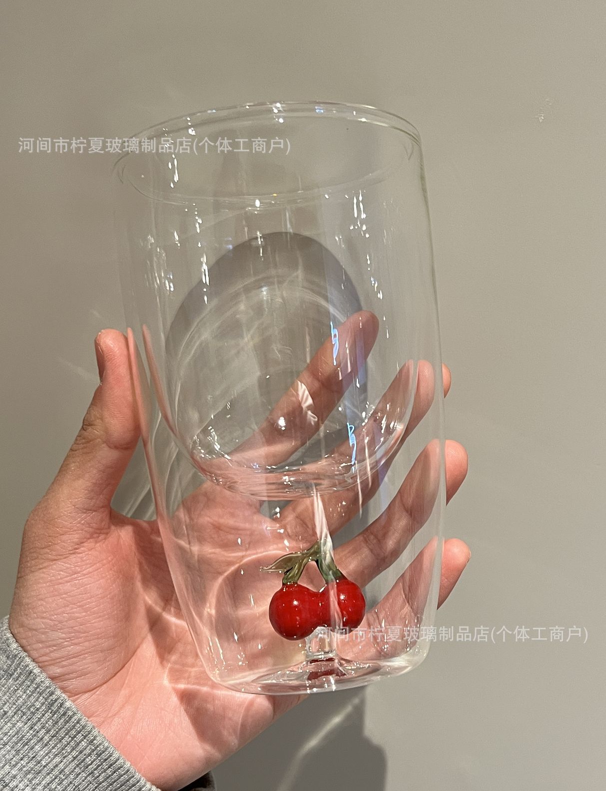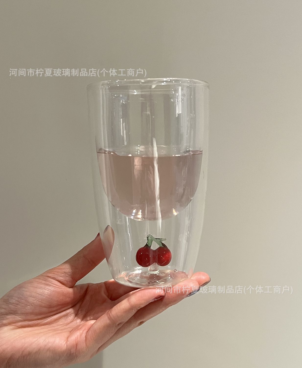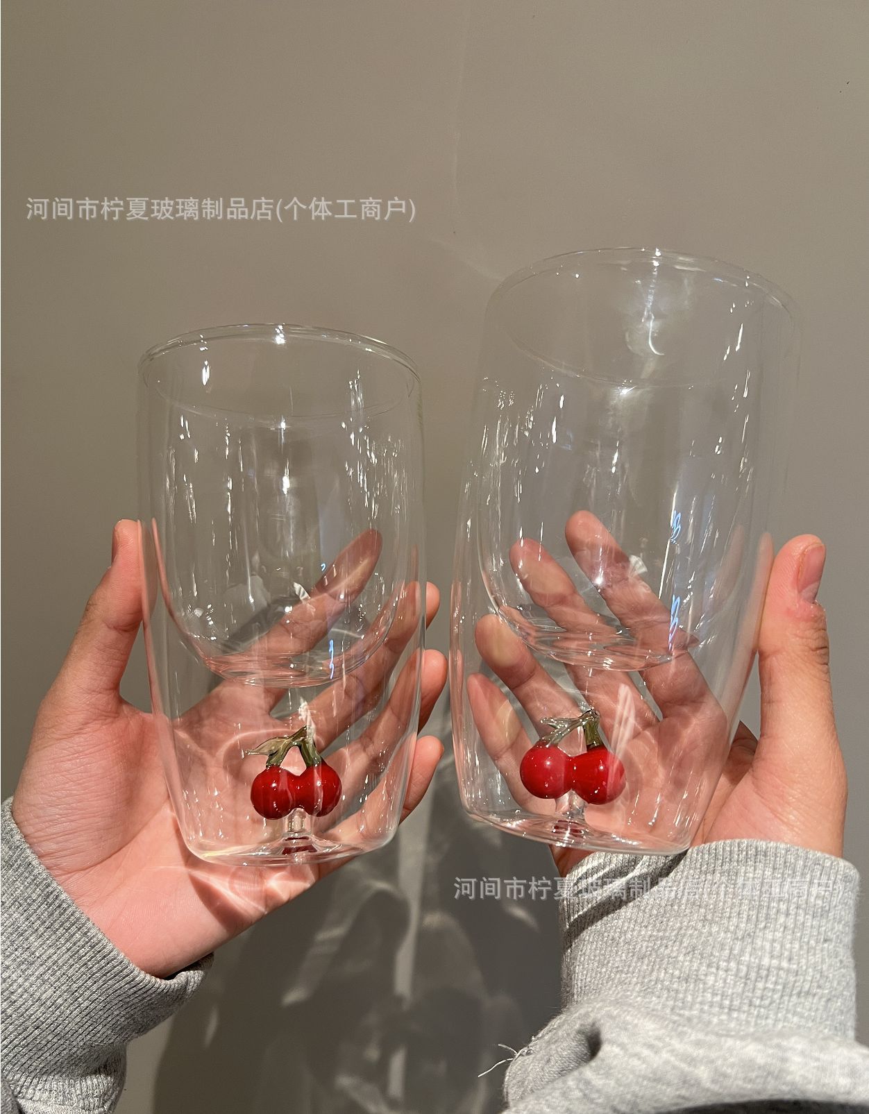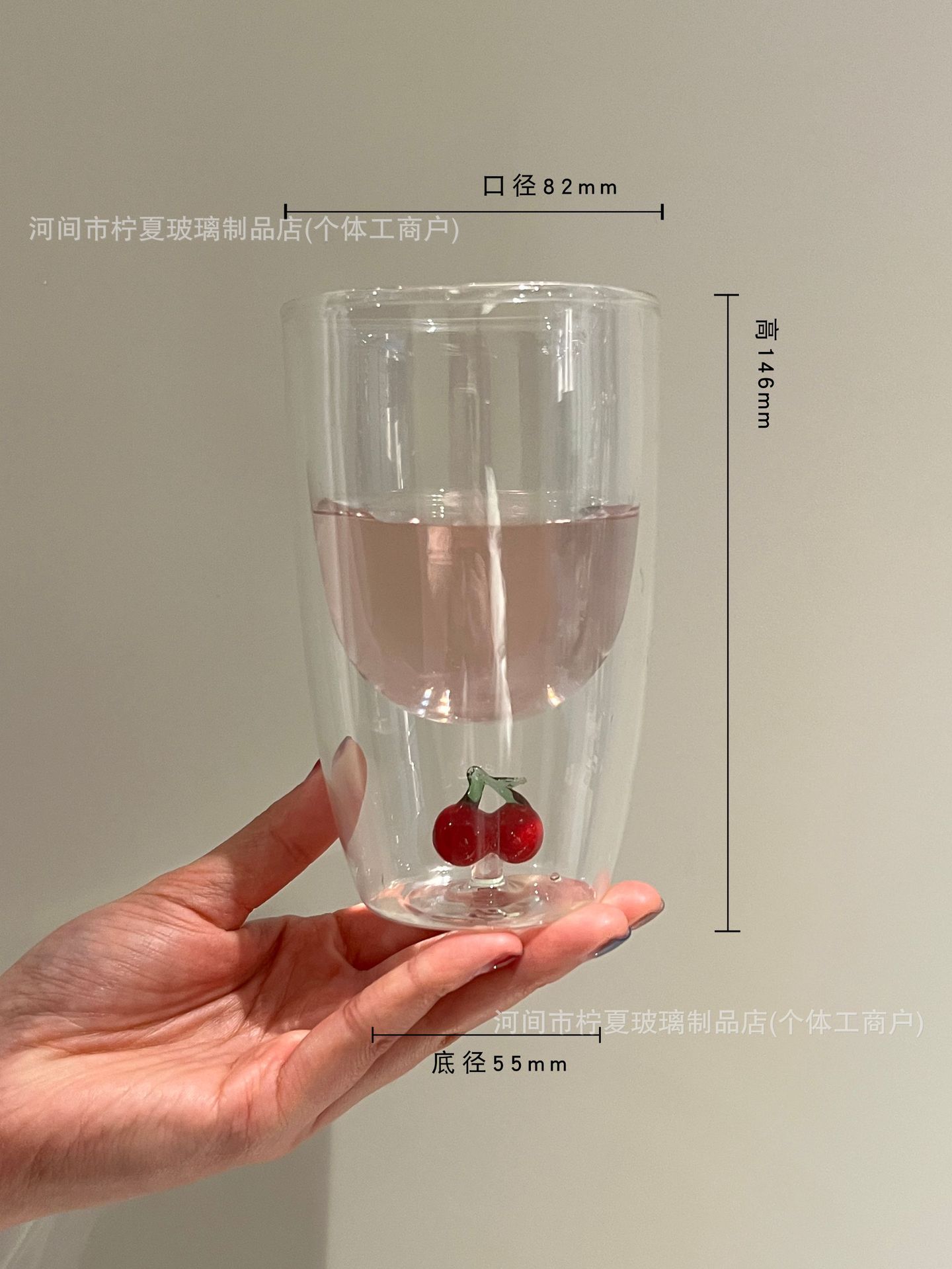 双层高硅硼玻璃杯高颜值女生樱桃杯家用耐高温透明杯子办公水杯