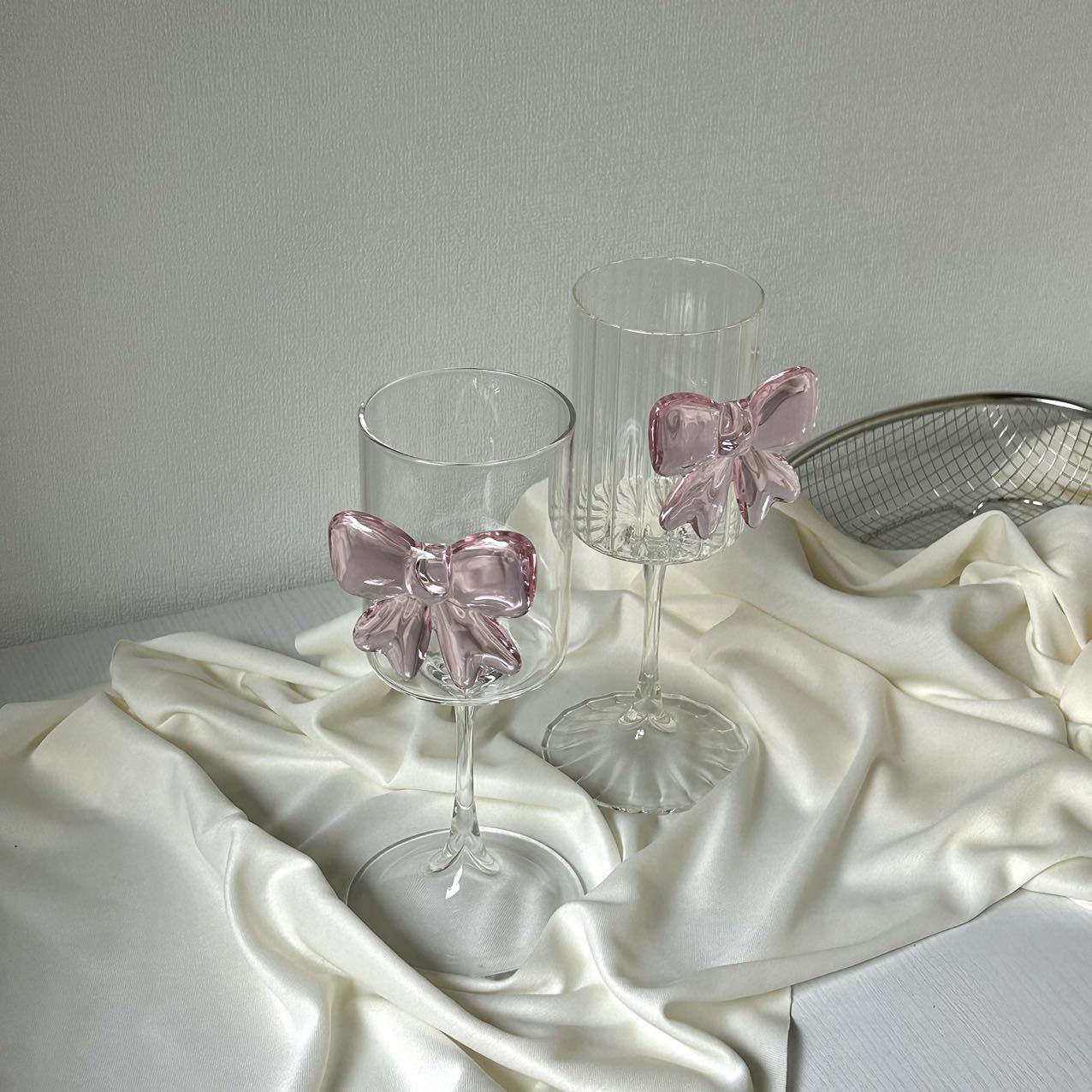 ピンクの蝶ネクタイプリンセスガラスビッグリボンガラスジュースカップインガールニッチバタフライゴブレット