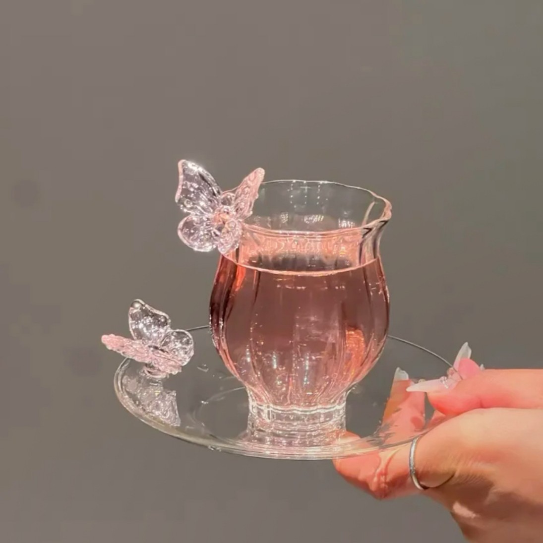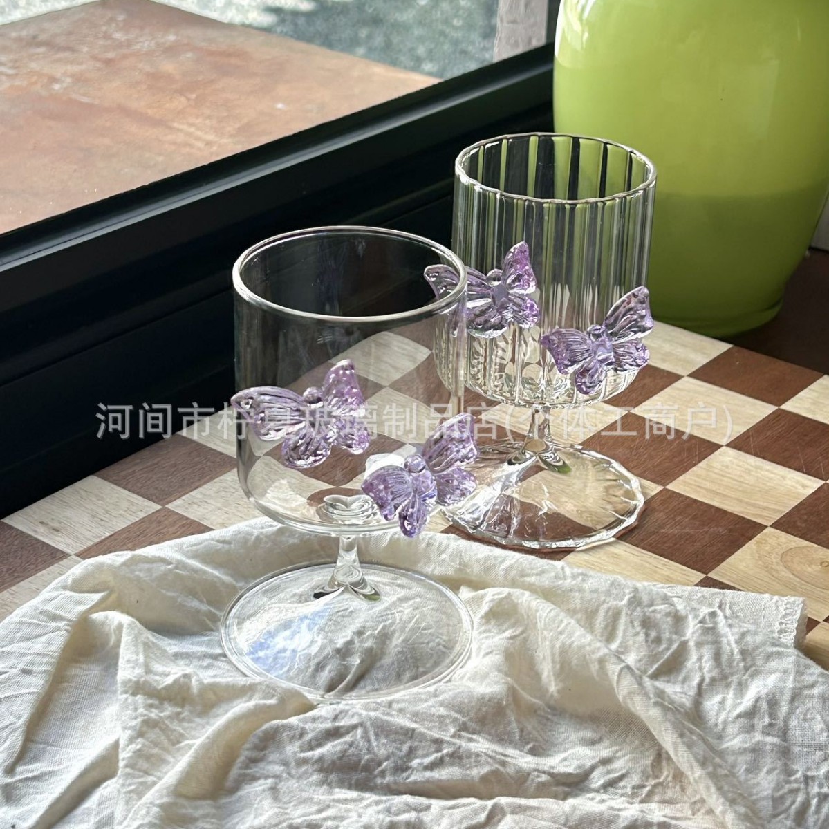 蝶高足杯グラスコップワイングラスins風高ホウ素シリコンガラス高顔値ジュース高足カップ