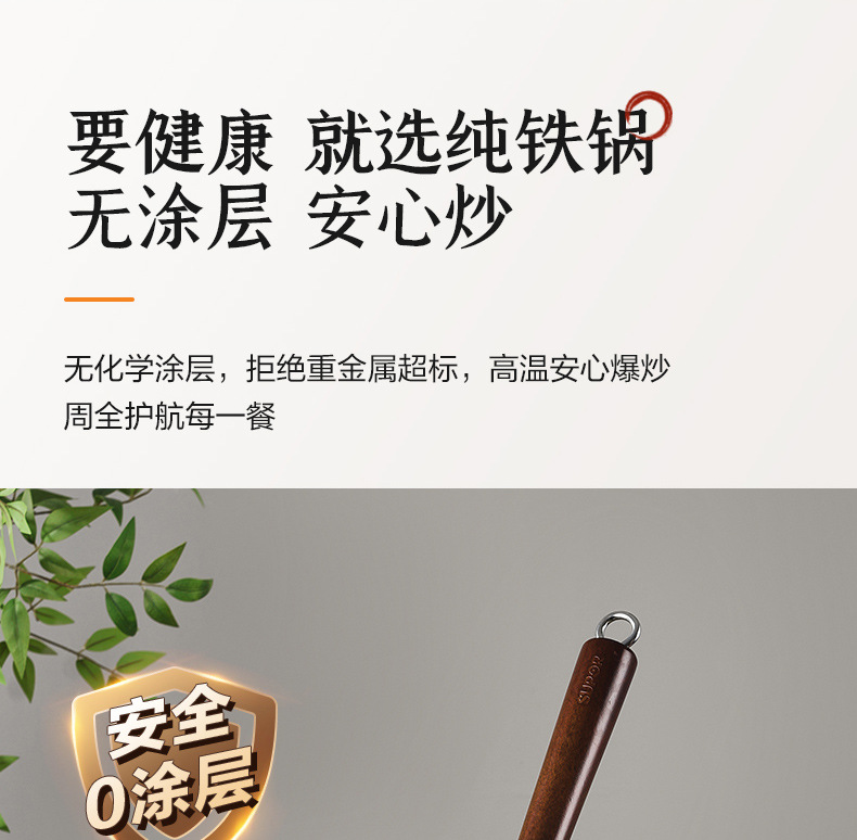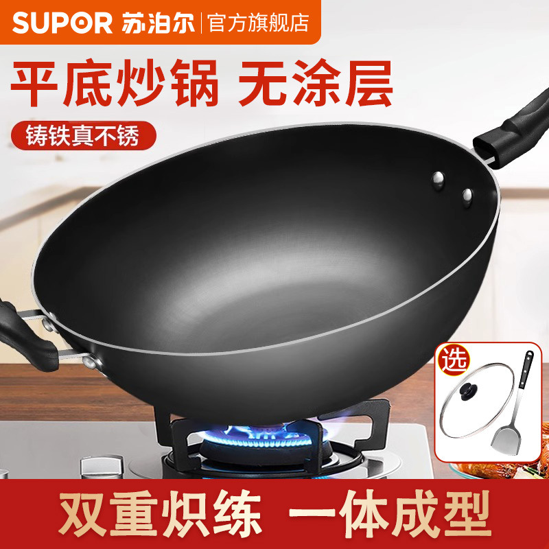 蘇泊爾鉄鍋家庭用無コーティングステンレス炒め鍋ガスコンロ専用炒め鍋中国式フライパン鋳鉄鍋
