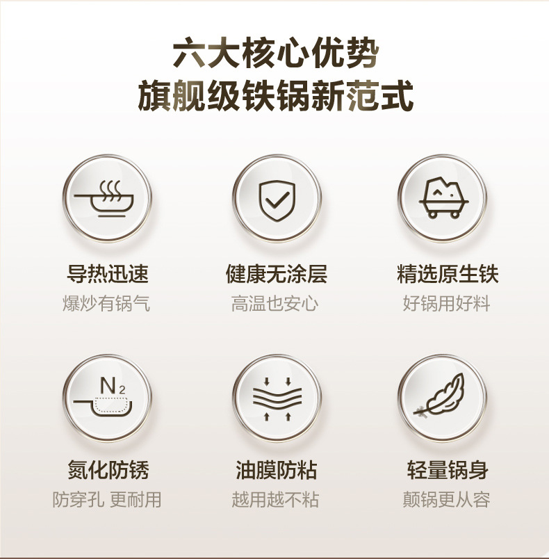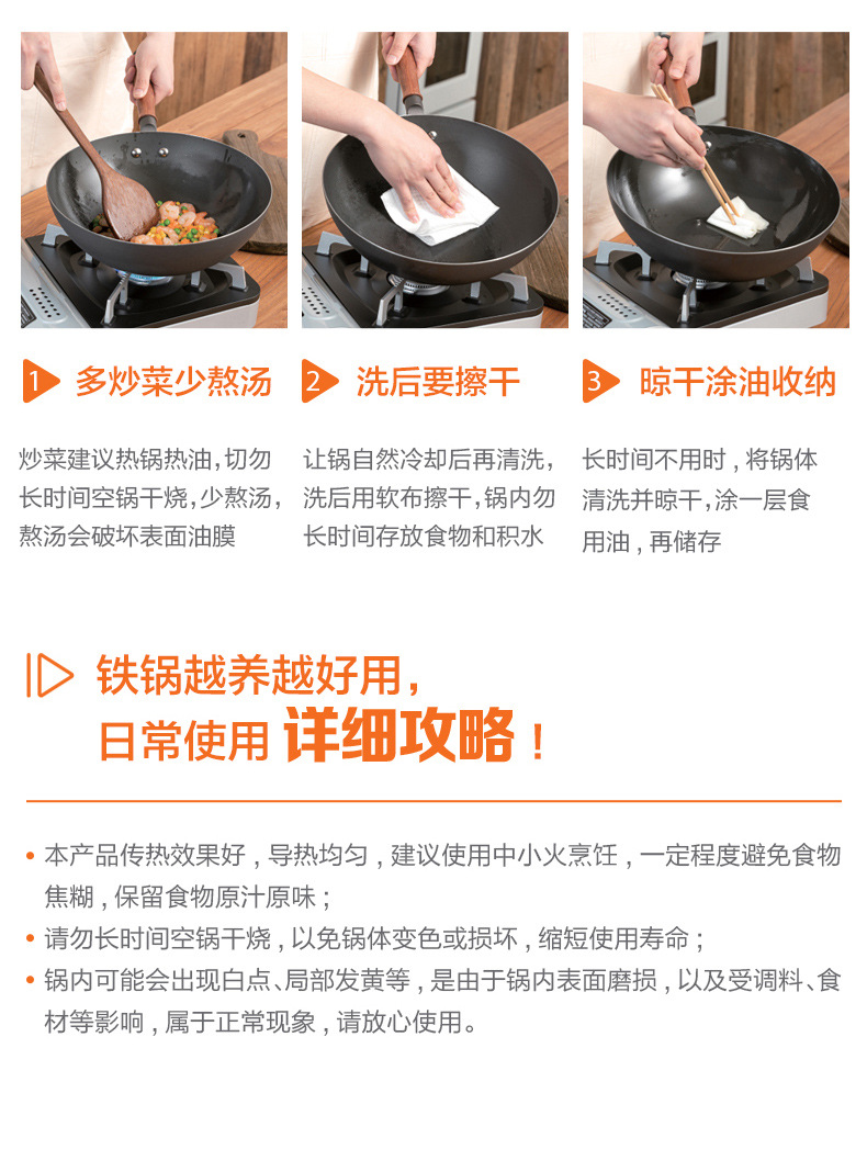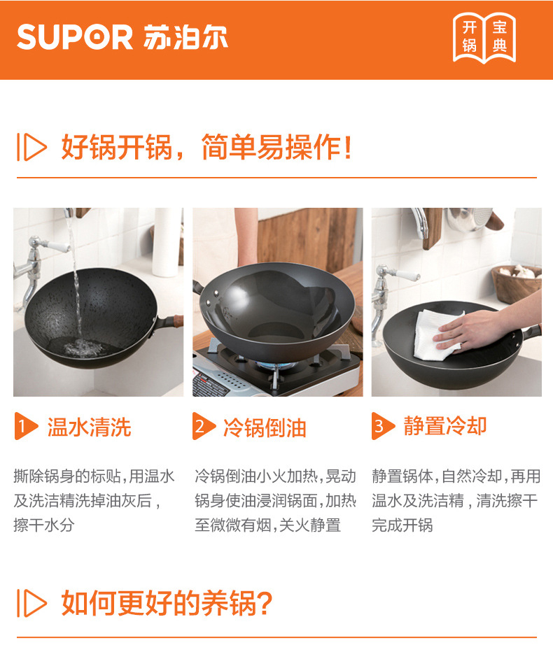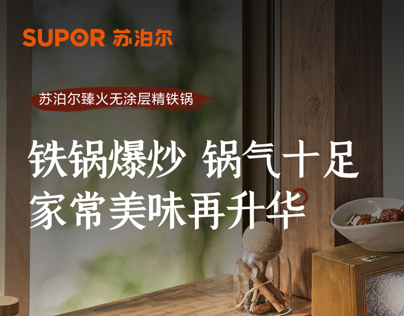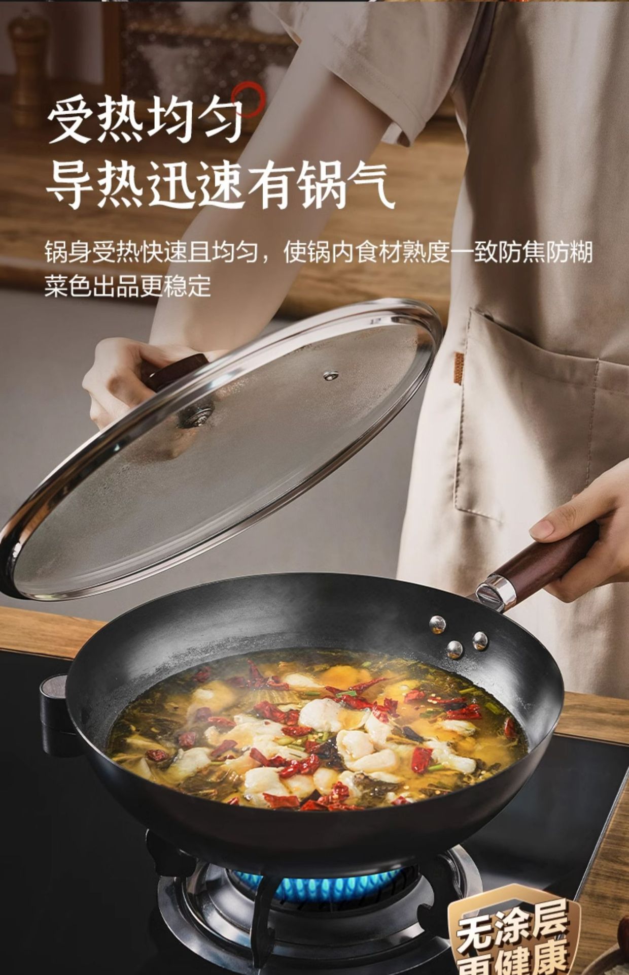正品苏泊尔无涂层铁锅炒菜锅家用无涂层炒锅老式加厚煤气灶精铁锅