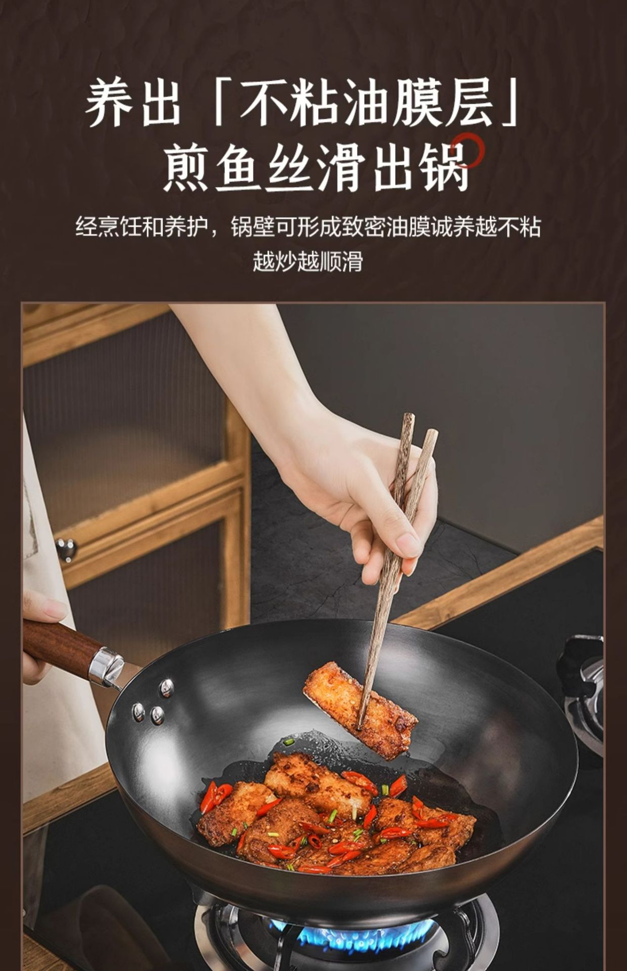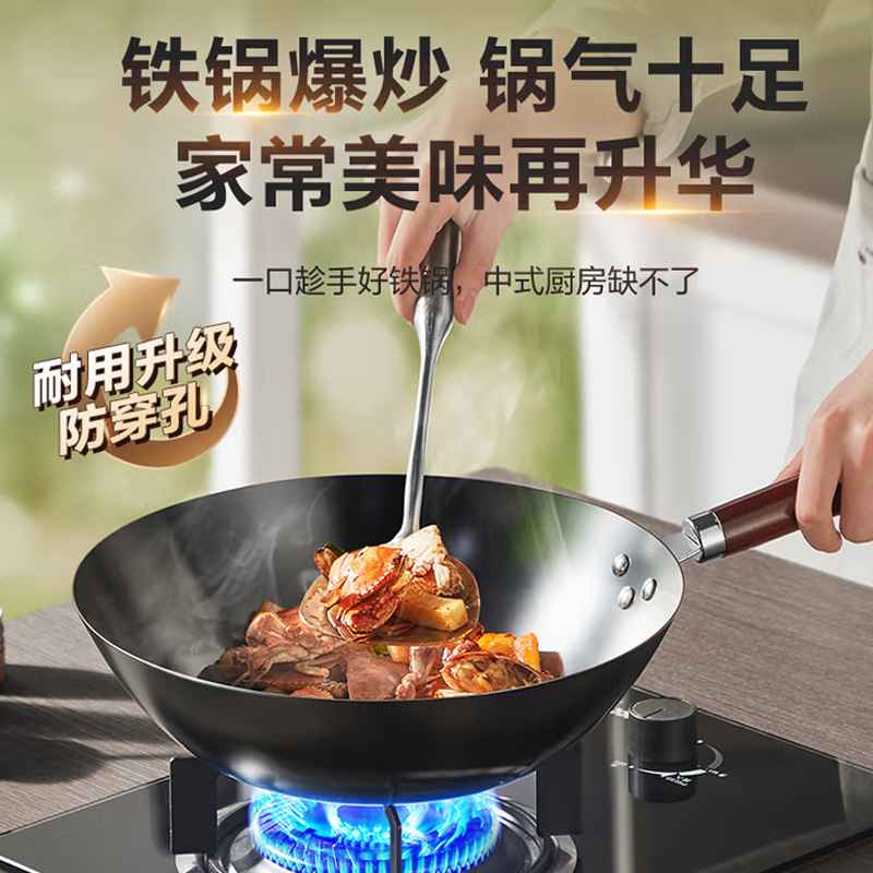 苏泊尔铁锅炒锅家用炒菜锅老式无涂层燃气灶明火专用精铁熟铁锅