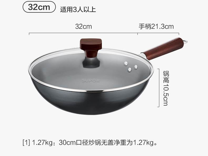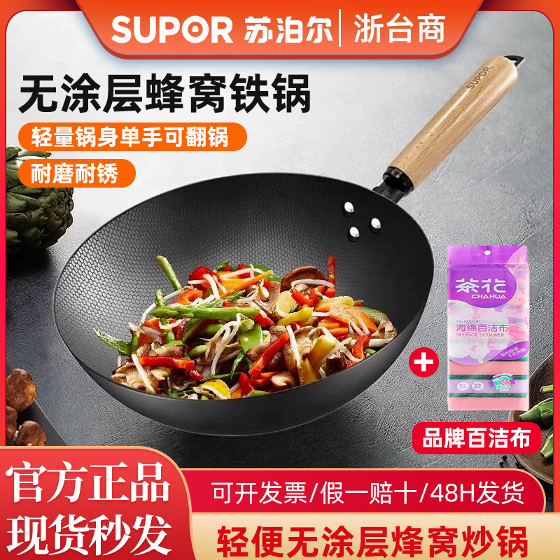 蘇泊爾炒め鍋セルラー無コーティング精鉄炒め鍋家庭用鉄鍋明火炒めフライパンvc 32rf01