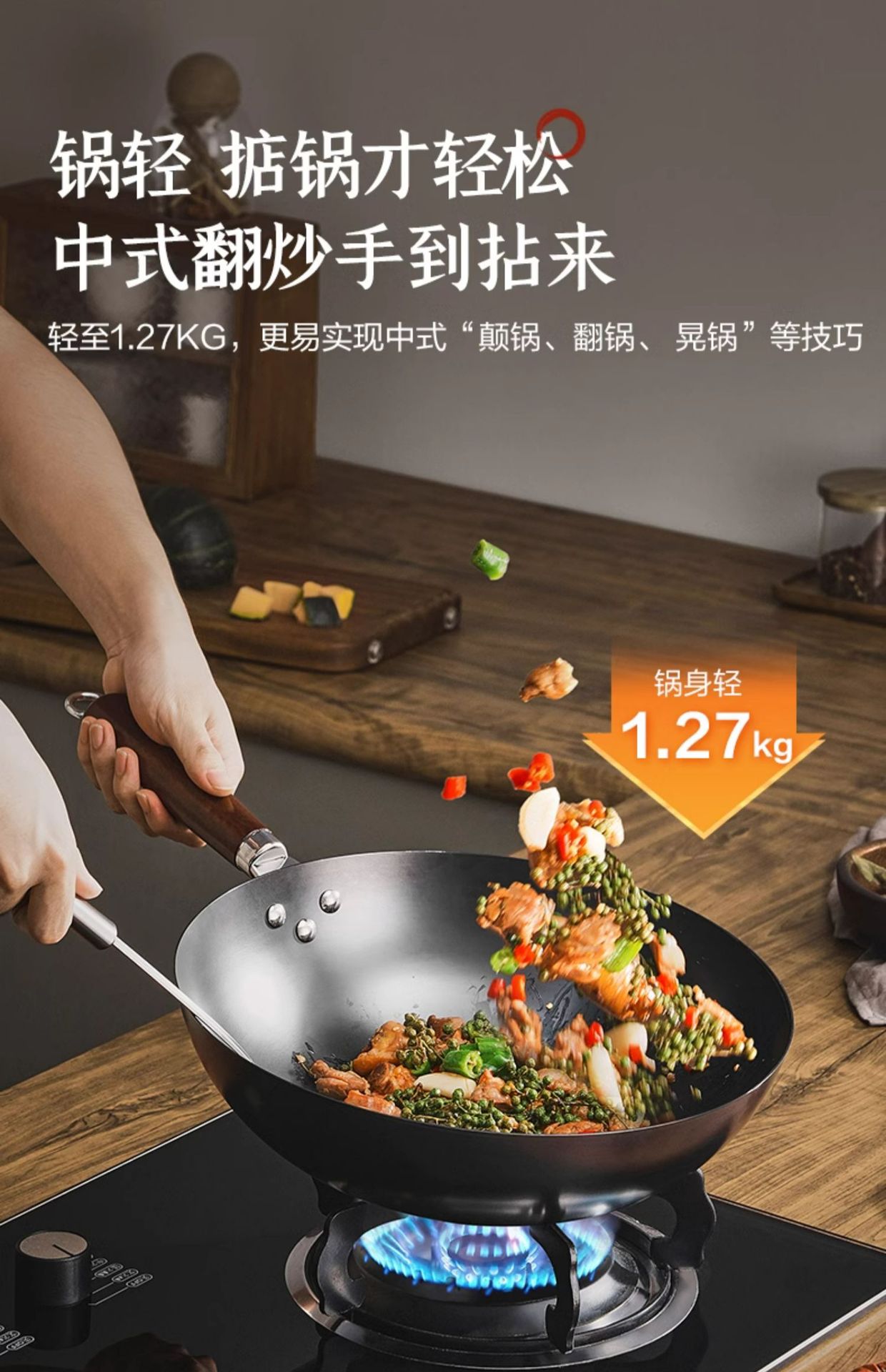 蘇泊爾鉄鍋家庭用炒め鍋はコーティングがなくて軽量です。