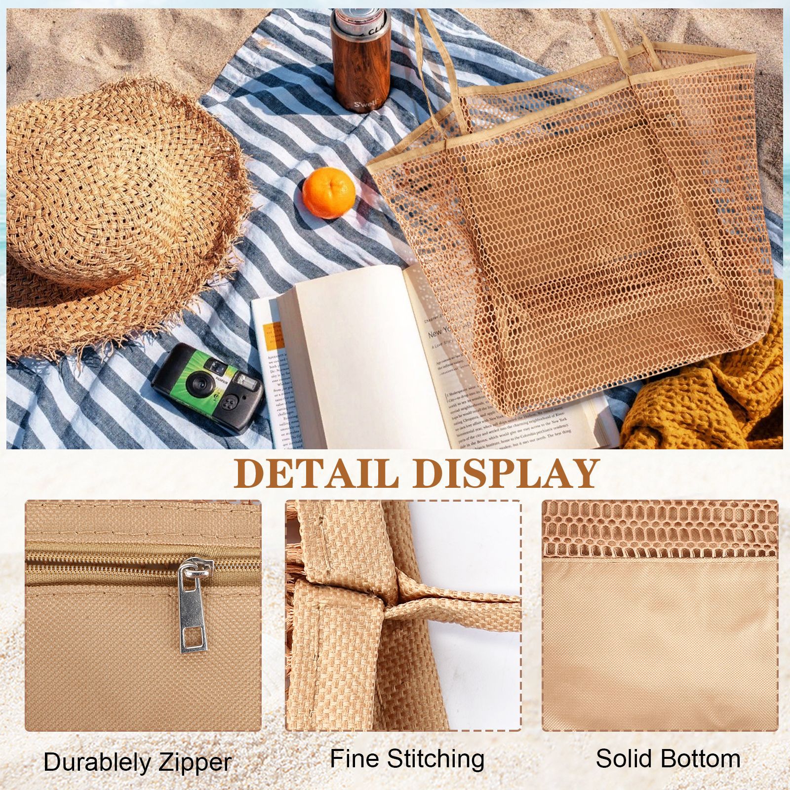 クロスボーダー折りたたみビーチバッグメッシュメッシュハンドバッグレディースショルダーバッグ夏アウトドア旅行必須観光バッグ
