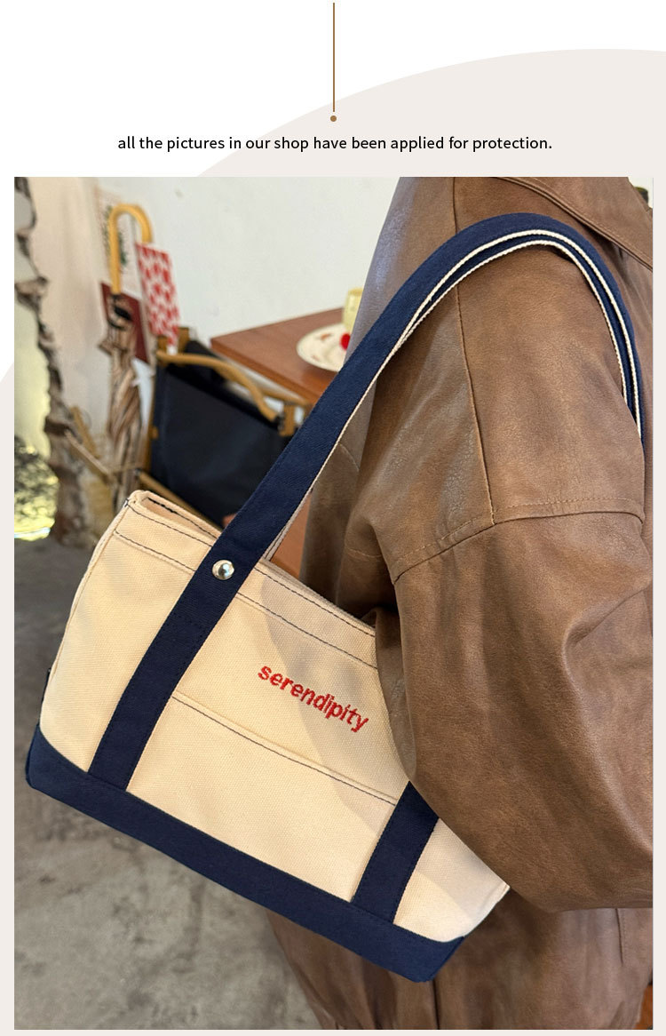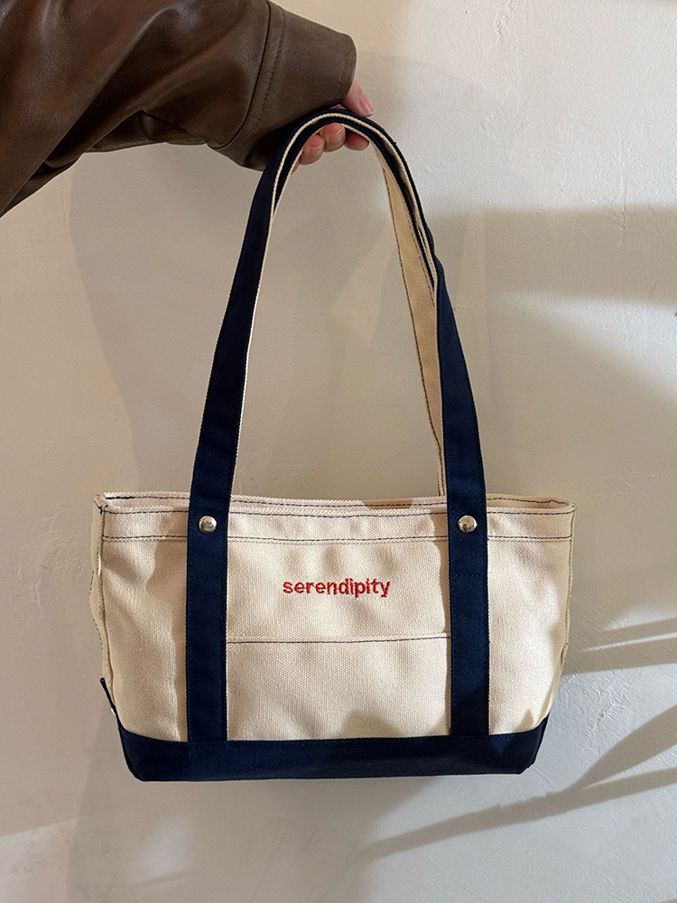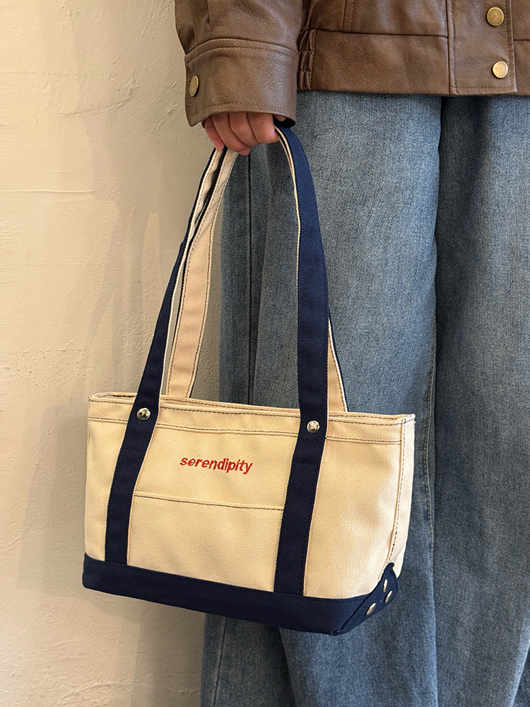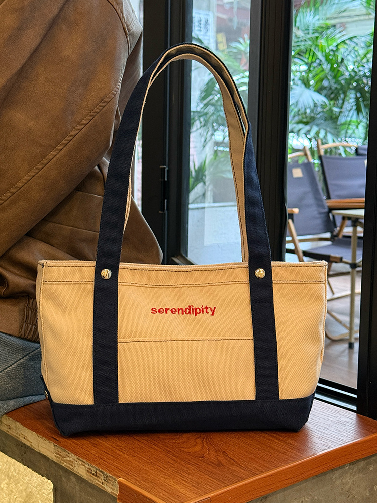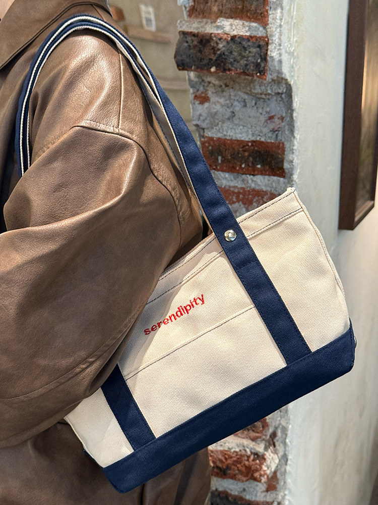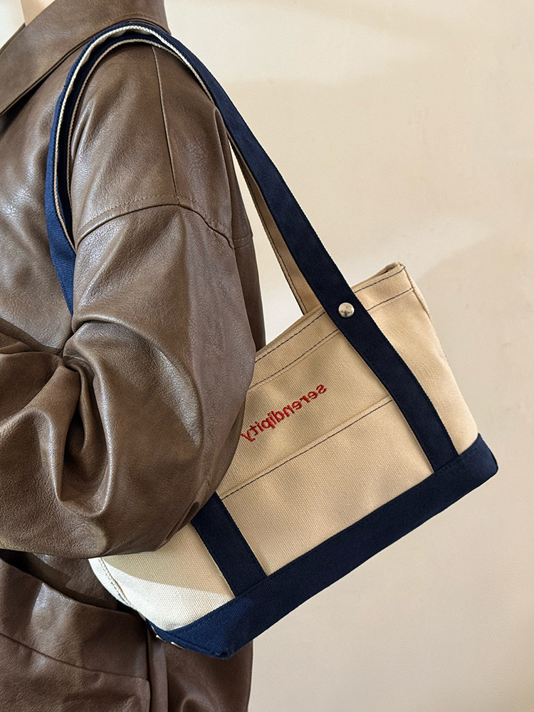 韩国休闲风拼色帆布包包女2025新款手提单肩斜跨包出大容量托特包