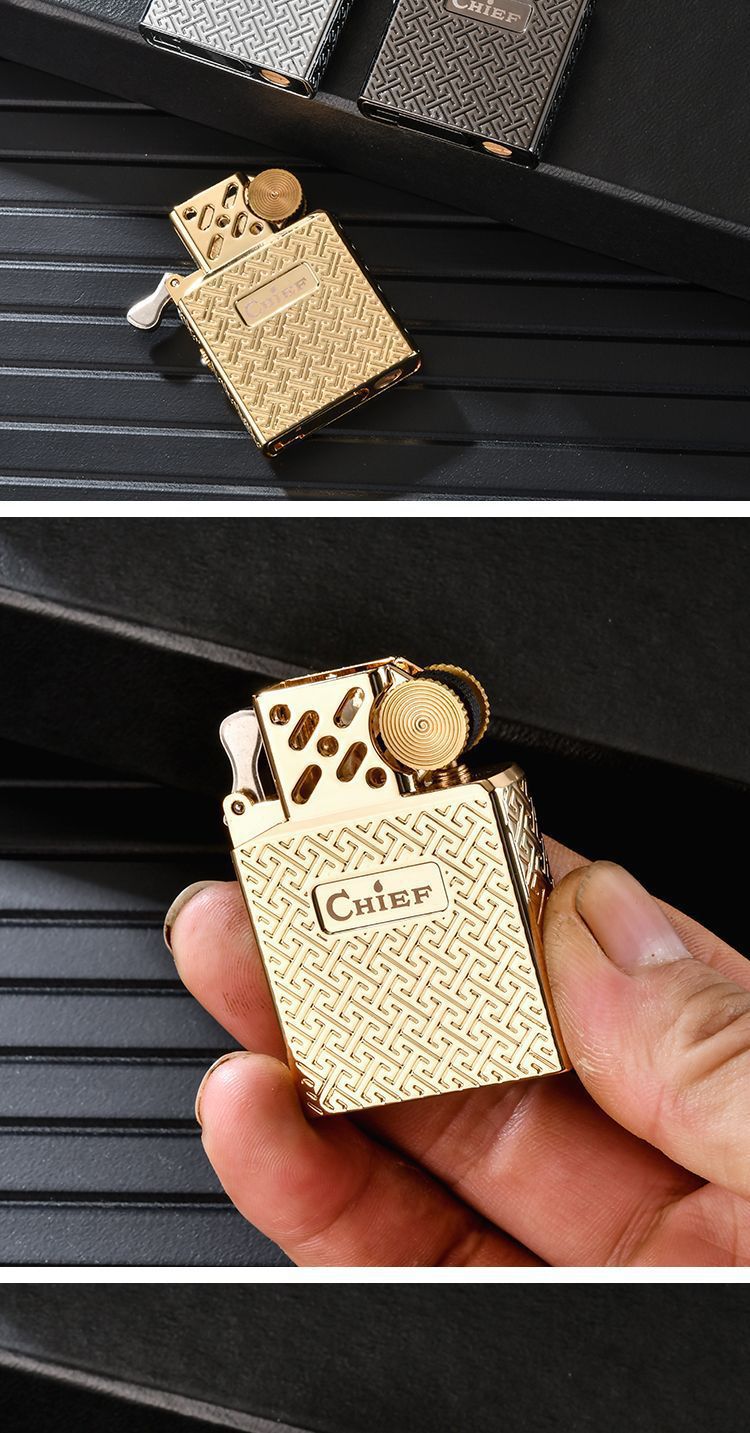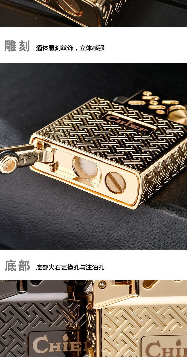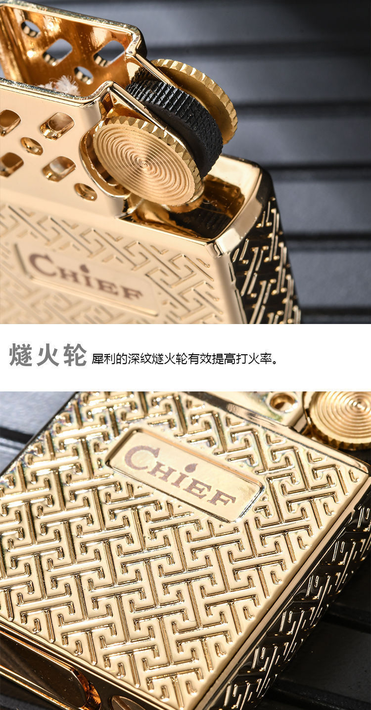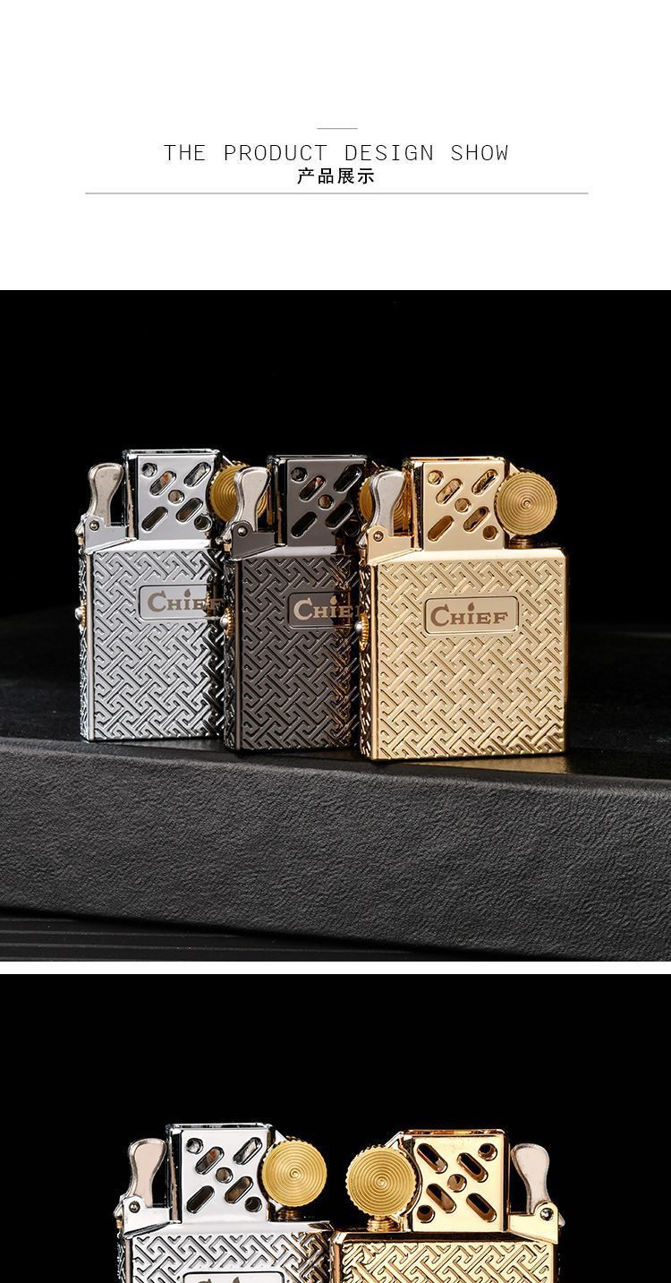 CHIEF首領二世代機高級ロール模様古銀灯油ライター小型誕生日プレゼント彼氏