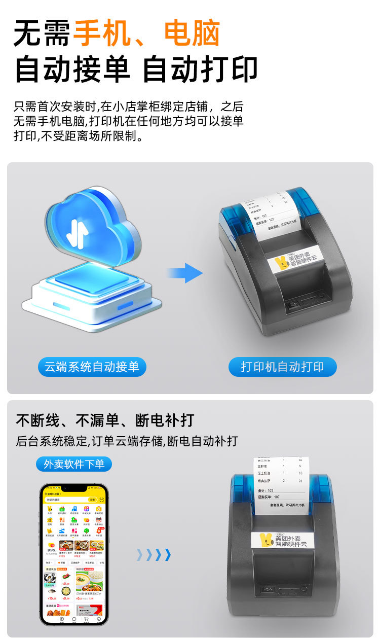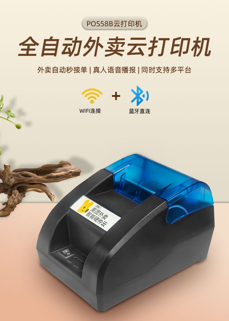 美団雲饥えたか、宅配注文プリンタ全自動受注感熱WiFi真人音声チケット機