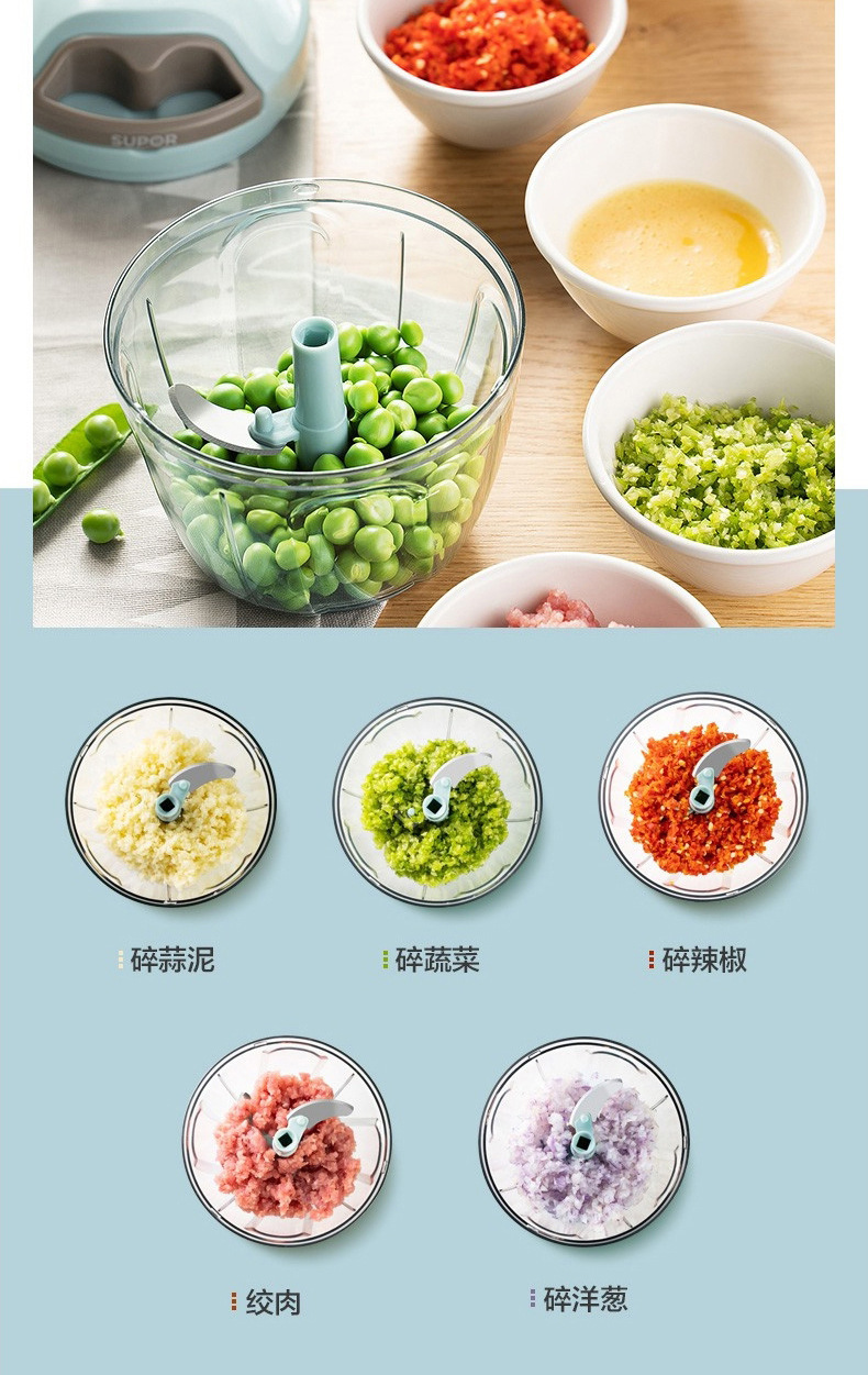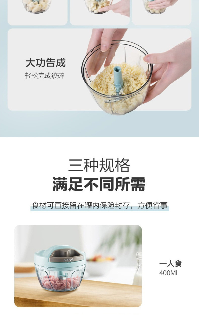 Supor 野菜調理機、家庭用ガーリックミキサー、手動多機能ミートグラインダー、ガーリックプーラー、補助食品グラインダー