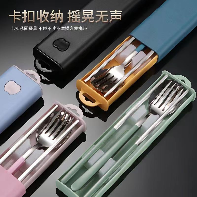现货304不锈钢餐具套装勺子叉子筷子三件套公司广告礼品便携餐具
