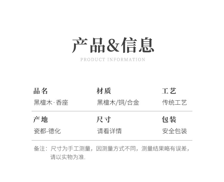 黑檀木线香香座铜香插家用室内禅意香炉托盘沉香檀香支架创意摆件