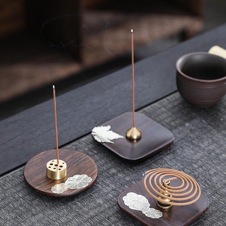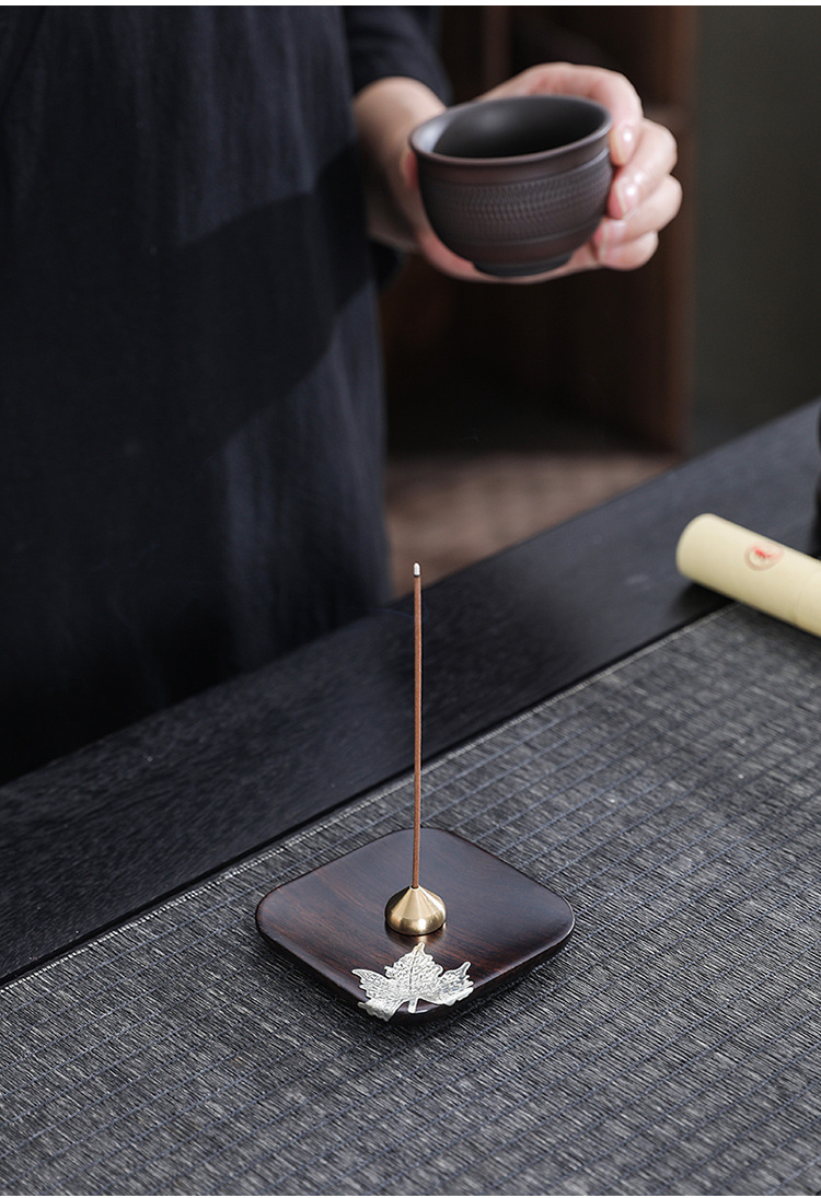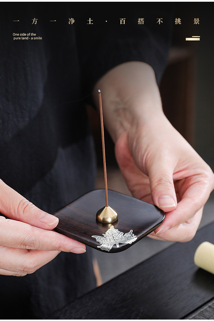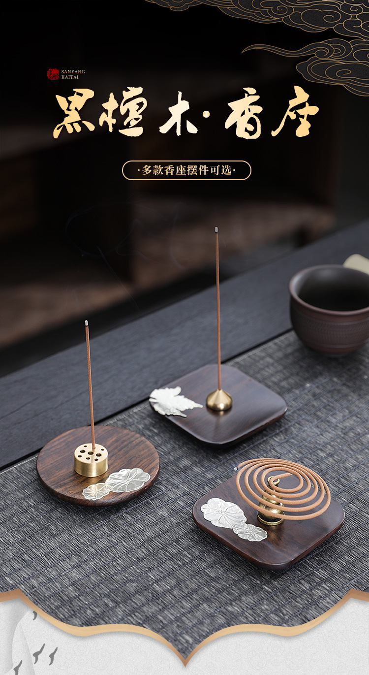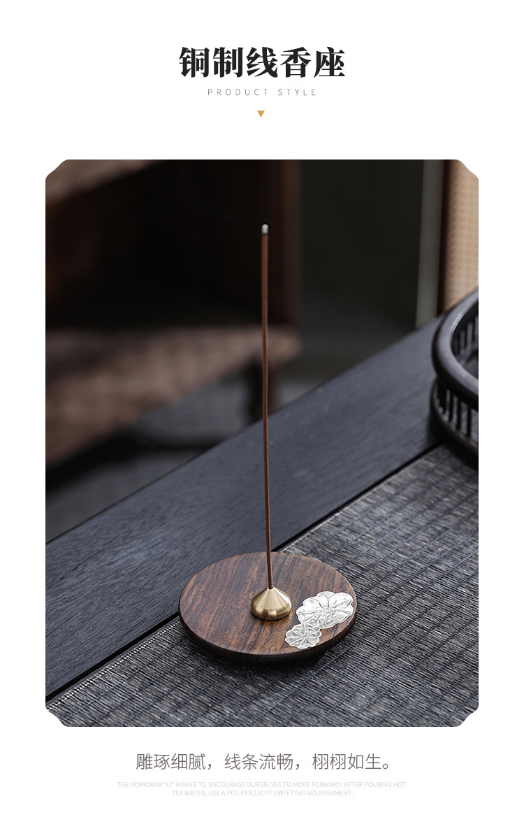黒檀木線香座銅香挿し家庭用室内禅意香炉トレー沈香檀香スタンド創意置物