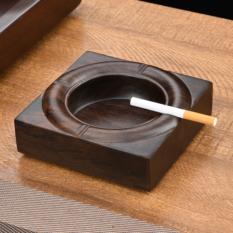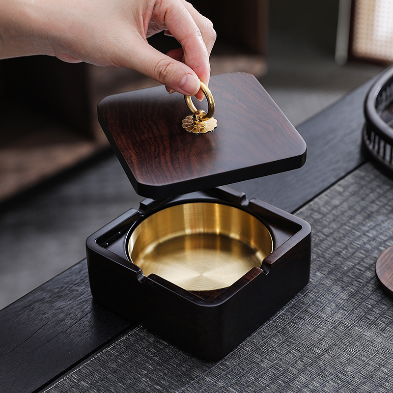 黒檀無垢材灰皿家庭用新しい中国風のリビングルームハイエンドオフィスティーテーブル大型蓋付き飛散防止灰