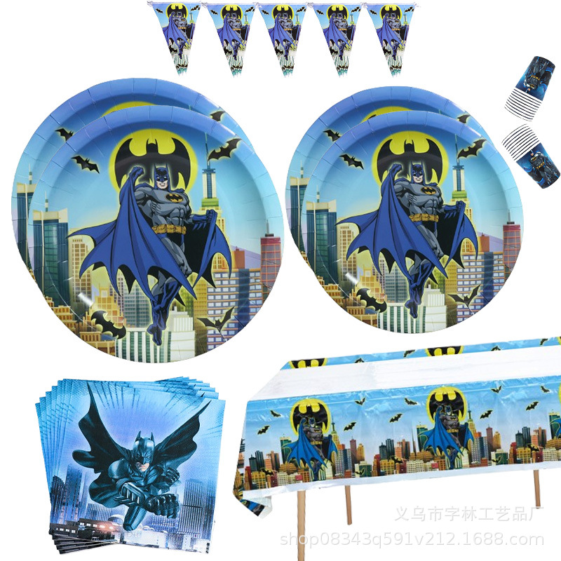 バットマン誕生日パーティー用品使い捨て食器紙皿ティッシュテーブルクロススーパーヒーローテーマ誕生日装飾