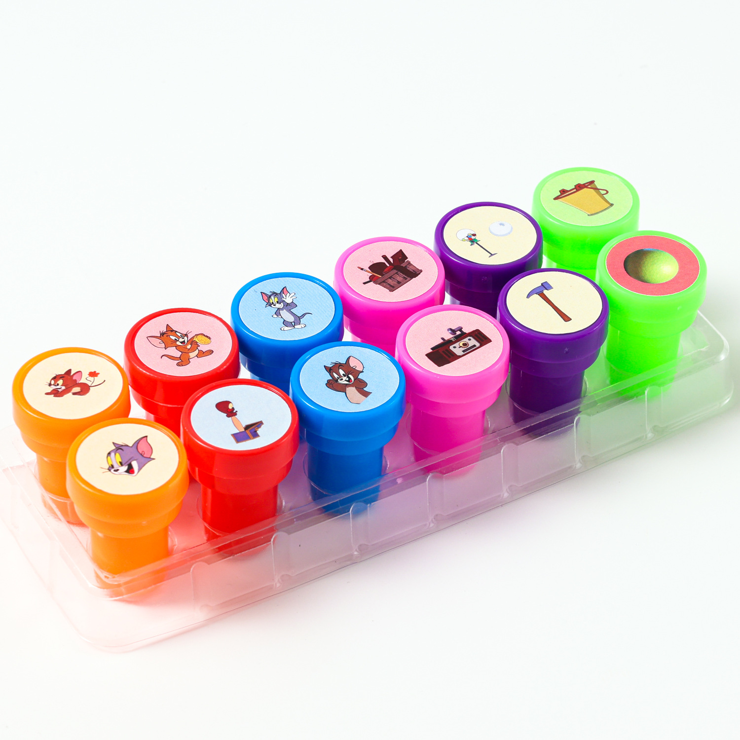 12個の漫画風子供用スタンプセット、かわいい猫とネズミのスタンプ、幼稚園の賞品