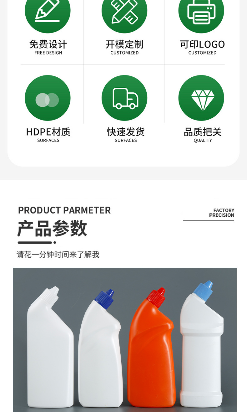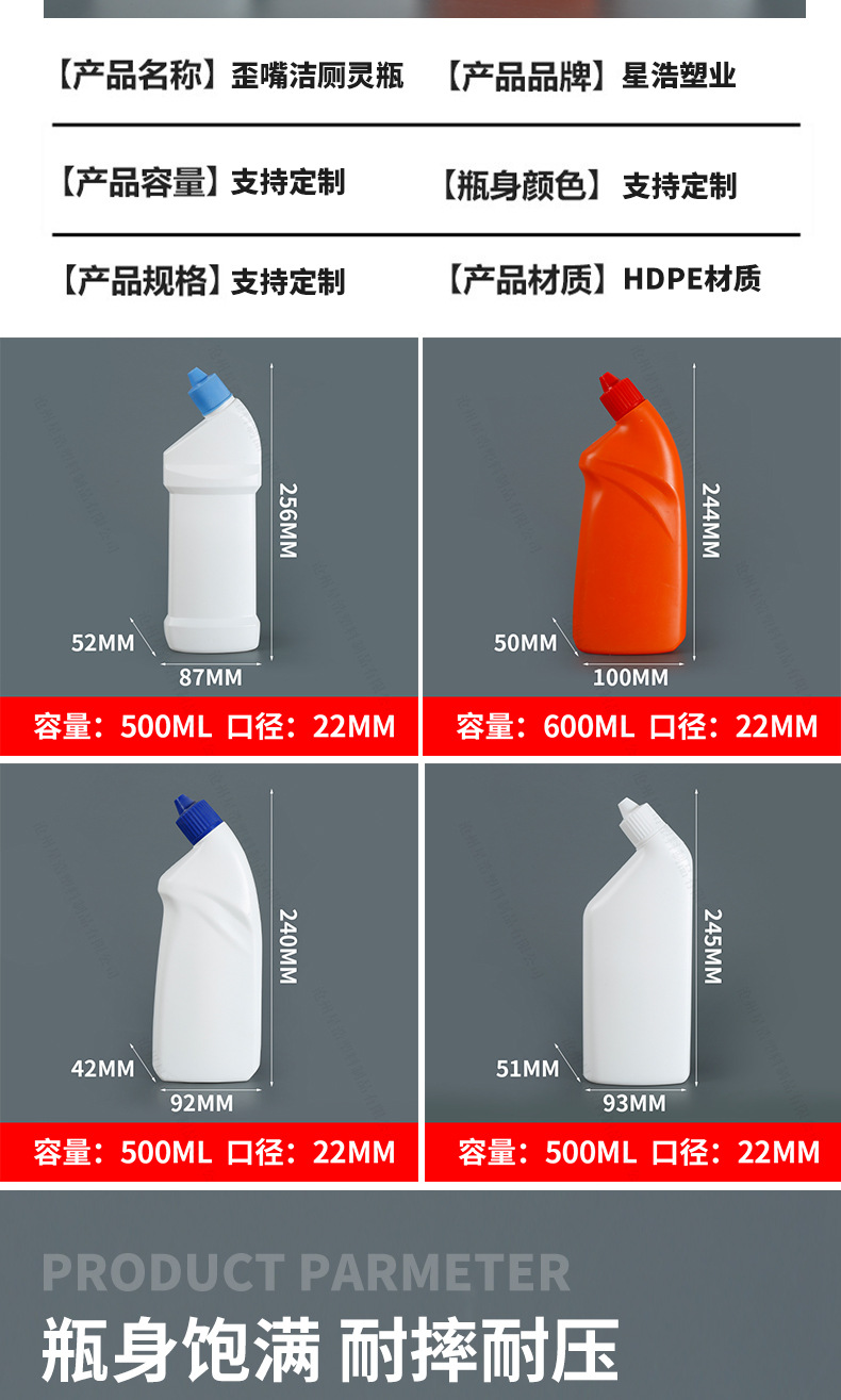 500ml塑料洁厕液瓶 歪嘴瓶挤压瓶日化清洗剂包装瓶厕所清洁液瓶