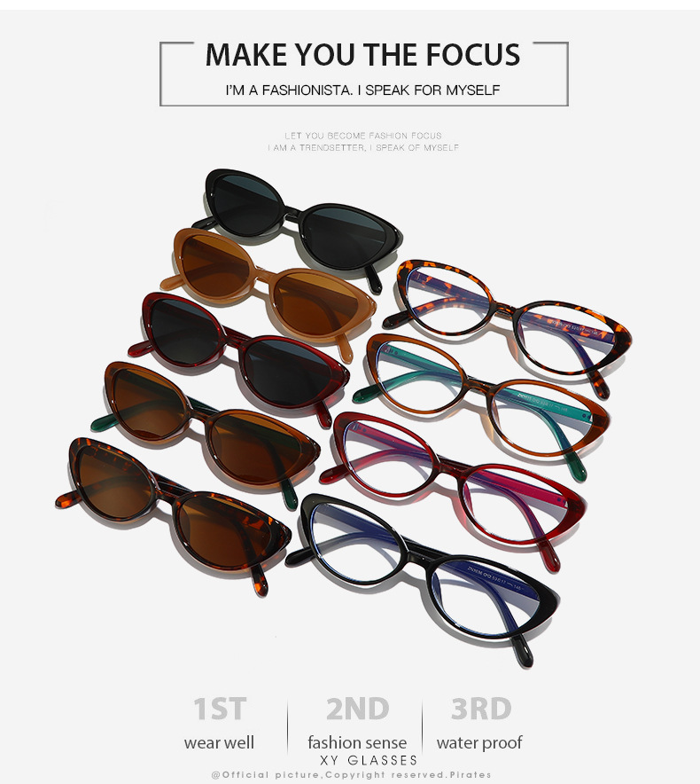 欧美时尚新款猫眼太阳眼镜个性百搭街拍网红同框墨镜防蓝光平光镜