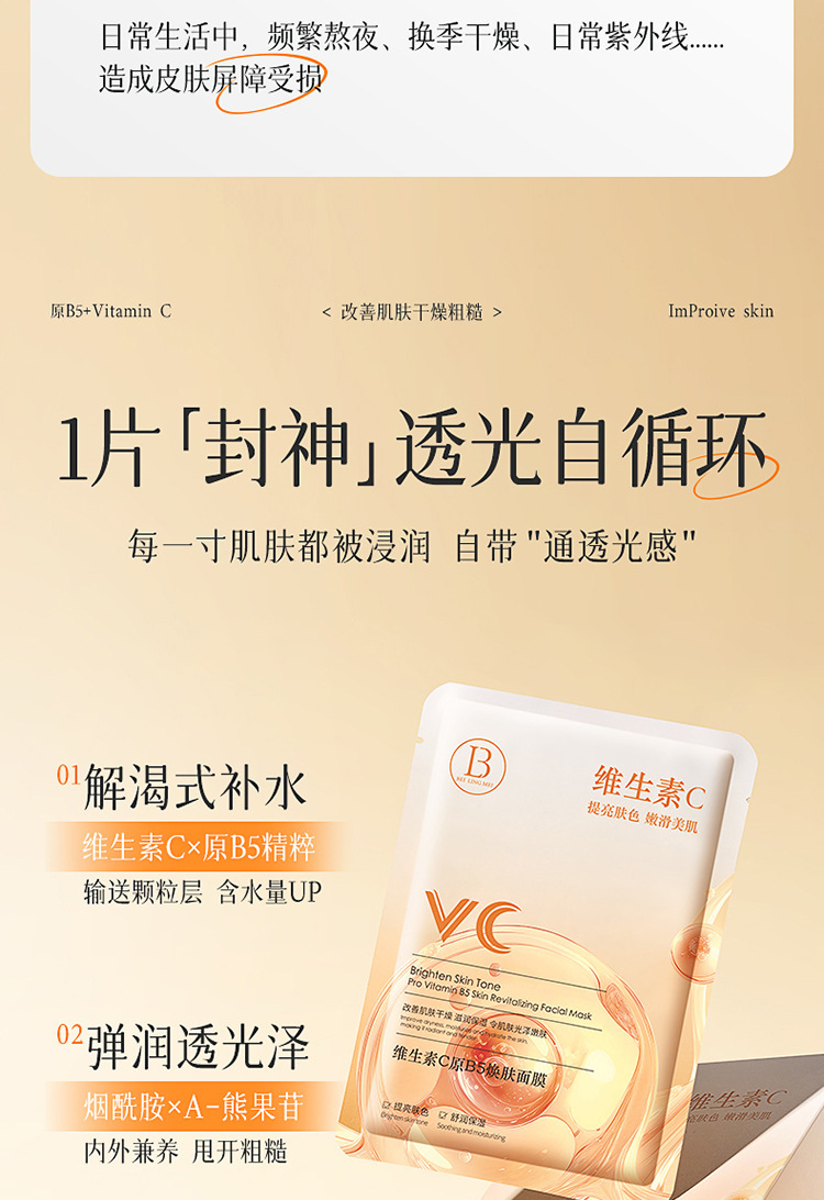貝玲美ビタミンcの元のb 5の肌のマスクは水を補って保湿して肌の色のスキンケアの化粧品のマスクの卸売りを明るくします。