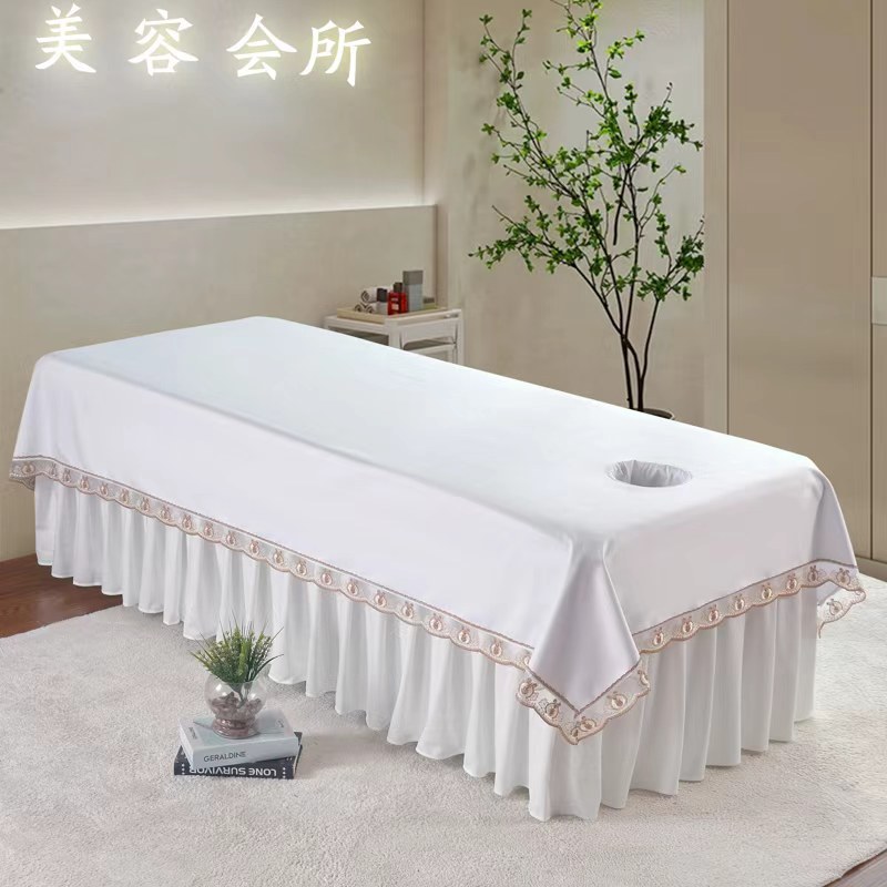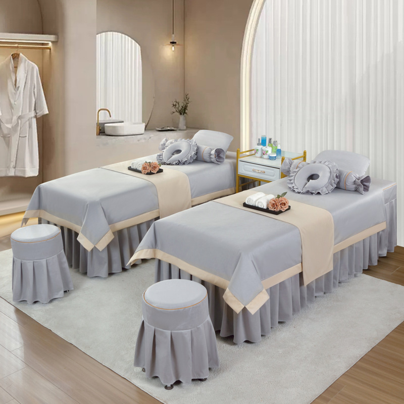 綿麻美容ベッドカバー4点セット高級軽豪華美容院専用マッサージシャンプーセット四季通用卸売り