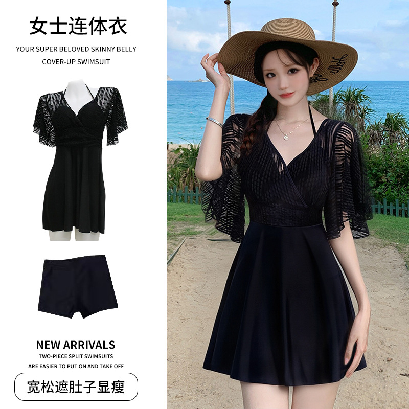 2026新款韩版泳衣女裙式连体泳衣女平角保守遮肚显瘦温泉游装批发
